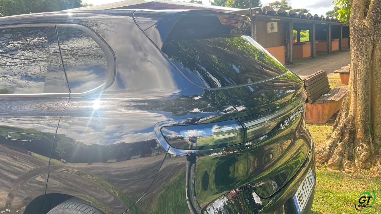 Les Leapmotor B10 et C10 partagent une plateforme et leurs technologies. Pas étonnant donc de retrouver le moteur électrique de 218 ch sur le train arrière du petit crossover. Il présente aussi une suspension McPherson à l’avant, 5 bras à l’arrière et même une répartition du poids 50/50. Ce dernier élément est sans doute aidé par les batteries. Eh oui, il y a en a deux au catalogue on l’a vu. En Martinique la grande batterie présente une capacité de 67,1 kWh, ce qui lui permet d’offrir une autonomie de 434 km. Elle charge à 168 kW elle prendra 20 min pour passer de 10 à 80 % de charge sur une borne rapide. Côté consommation et d’après mes petits calculs, il faudra toutefois tabler sur un appétit moyen gravitant autour des 16 à 18 kWh/100 km, soit près de 360 km à 390 km d’autonomie. Ma conduite, mon style ont été plutôt raisonnable flirtant parfois avec une écoconduite que je maitrise très bien, mais aussi des moments d’accélérations voulues et prolongées sur notre rocade ou autoroute…