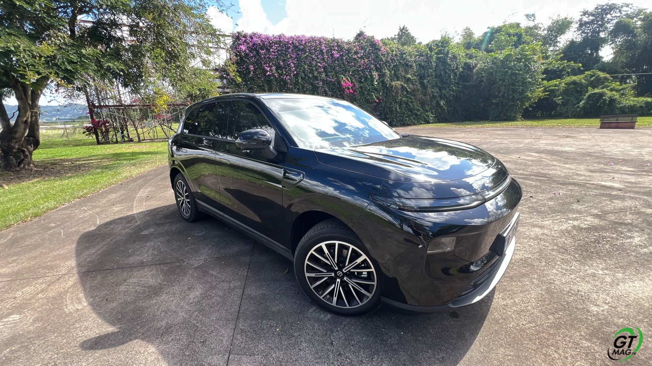 Côté design on peut le trouver surement discret, tout en fluidité, et dont l’un des mérites est de ne pas être générique de ne pas donner l’impression qu’on l’a déjà vu cent fois… Son look dynamique et ses lignes fluides reflètent une nouvelle génération de SUV électriques pensés pour la ville comme pour les longs trajets. La calandre fermée, typique des véhicules zéro émission rappelle qu’il est 100% électrique. La face avant du B10 au style « Gravity Field » déploie ses phares LED divisés avec bandes DRL, des poignées escamotables, des jantes 18 pouces, et une vraie bande lumineuse arrière. le B10 présente une signature visuelle haute et linéaire, tandis que ces « réelles » optiques sont logées plus bas dans le bouclier. A l’arrière justement pas de doute, on s’approche des formes du Porsche Macan, volontaire ou pas on peut s’y méprendre dans un rétroviseur par exemple… Le tout est plutôt bien dessiné, sans fioritures, un style sobre et efficace, discret comme je le précisais…