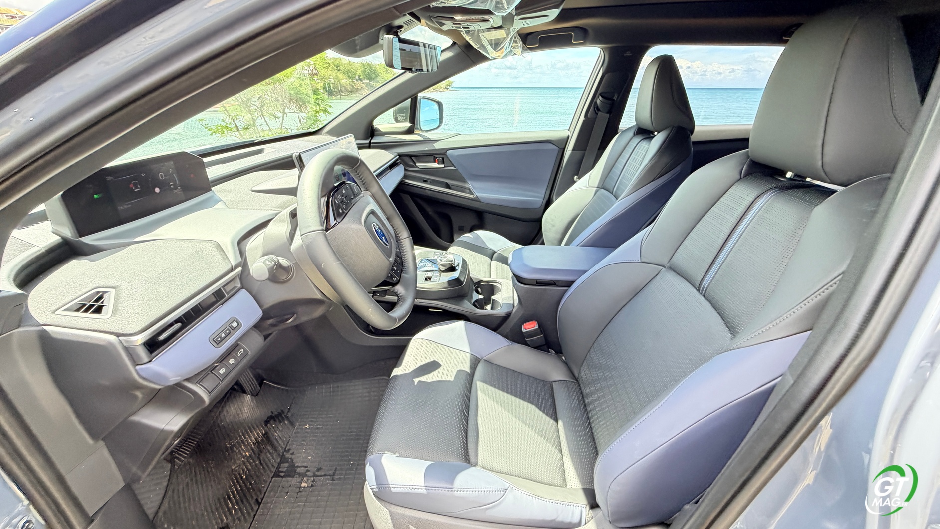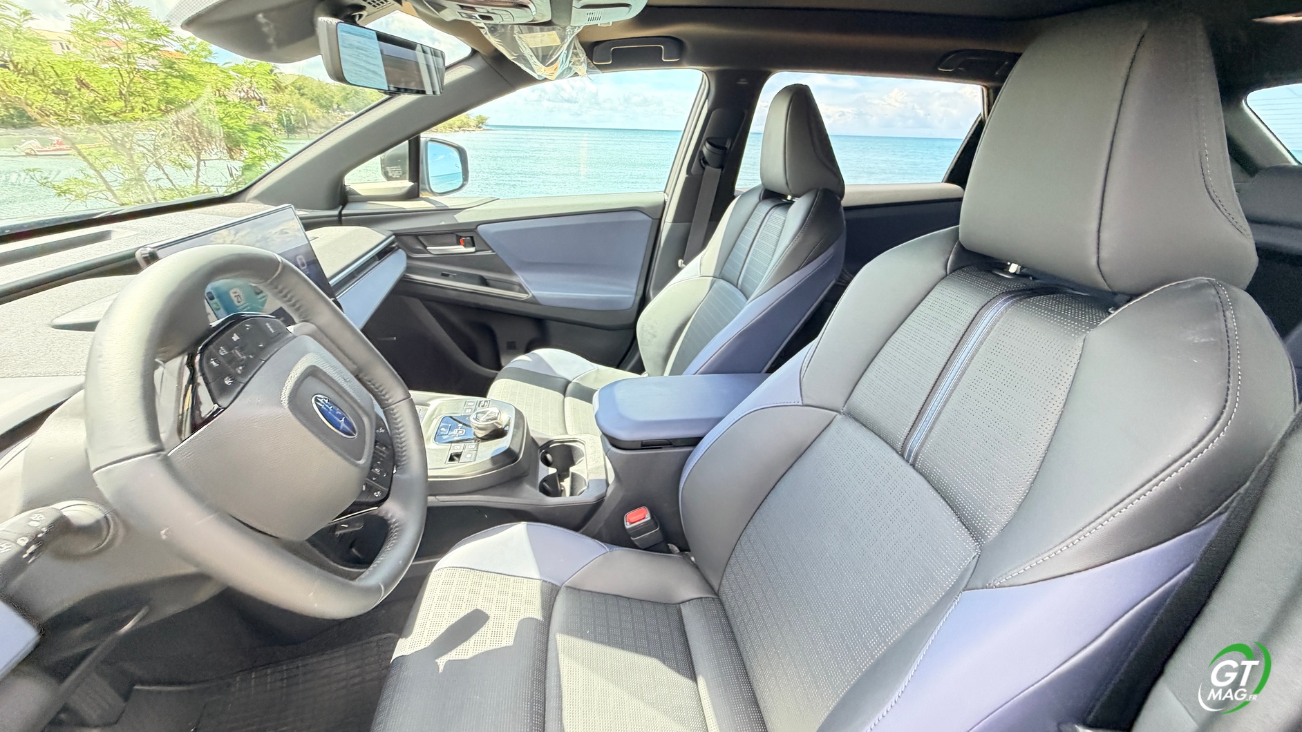 Je prends place à bord, et la première impression est celle d'un SUV qui a appris à respirer. Le Solterra 2026 profite de l'architecture dédiée aux véhicules électriques pour offrir un plancher totalement plat entre les deux sièges avant — fini le tunnel central encombrant. À la place, une large console flottante, épurée, qui libère un espace de rangement généreux accessible aussi bien depuis l'avant que depuis l'arrière. À l'avant, les sièges ont été revus pour ce millésime. Le maintien latéral est meilleur, le galbe plus prononcé, et le rembourrage a gagné en densité. On apprécie la position de conduite surélevée, typique des SUV Subaru, qui offre cette sensation de dominer la route sans pour autant sacrifier l'aérodynamique. La visibilité vers l'avant est bonne, même si les montants arrière restent un point faible, comme souvent sur ce type de carrosserie.