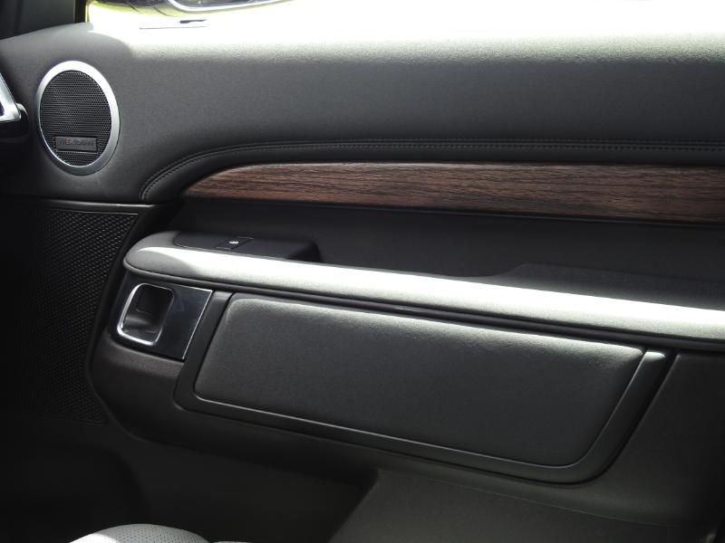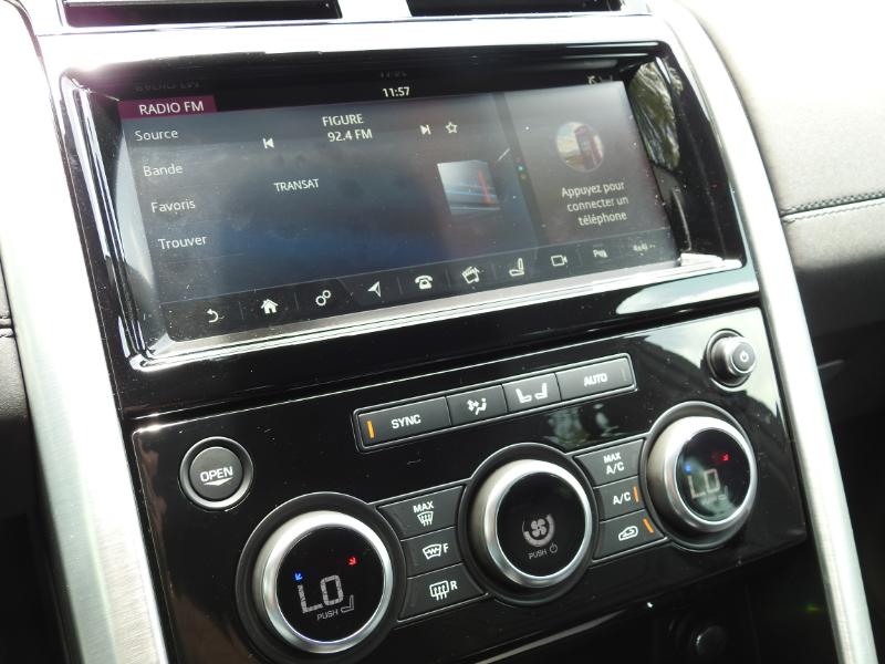 À l’intérieur, la montée en gamme est également évidente. La planche de bord du modèle sortant cède sa place à un meuble désormais en phase avec les dernières tendances à Solihull. Placages de bois et profusion de cuir concurrent à rendre l’habitacle chaleureux comme savent si bien le faire les Britanniques. Les formes rectilignes du tableau de bord sont dominées par la présence d’un écran tactile de 10,2 pouces (en série sur les versions les plus huppées). Le Discovery dispose d’un système WiFi capable de connecter jusqu’à 8 appareils et offre 9 ports USB et 4 points de recharge 12 V.