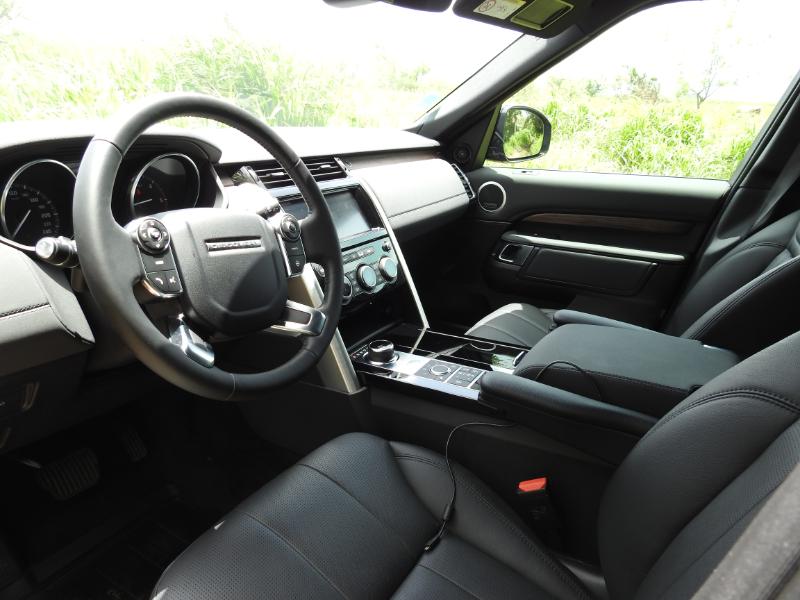 Avec sa longueur augmentée de 14 cm à 4,97 m, des 2 mètres de largeur, sa hauteur abaissée de 6,6 cm à 1,85 m, le nouveau Discovery en impose. Il se place en concurrence directe avec le Volvo XC90 (4,95 m, 2 m et 1,78 m) et l’Audi Q7 (5,05 m, 1,97 m et 1,74 m). Cet allongement permet au SUV d’offrir une habitabilité record. Le constructeur promet « 7 vraies places » pouvant accueillir 7 adultes, même sur long trajet. Les sièges s’escamotent et s’extraient électriquement du plancher. La manœuvre s’opère depuis le coffre, l’écran tactile de 10 pouces sur la console centrale ou encore depuis un smartphone. Des boutons plus conventionnels sont aussi à disposition.