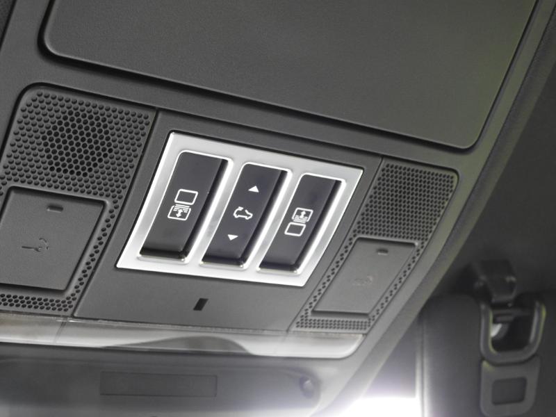 En configuration à 5 places, le coffre offre un volume de 1 231 litres qui atteint 2 500 litres lorsque la banquette du second rang est rabattue dans le plancher. En configuration 7 places, le volume démarre à 258 litres, passe par 1 137 litres une fois la banquette du troisième rang escamotée et à 2 406 litres toutes banquettes rabattues. Le constructeur innove avec l’apparition d’un plancher de coffre coulissant de 285 mm et supportant jusqu’à 300 kg. Ce dernier pourra être utile pour transporter un canapé lors d’une brocante ou plus vraisemblablement pour s’asseoir lors d’un pique-nique. Des rangements sont disséminés dans l’habitacle et peuvent accueillir et recharger quatre tablettes numériques.