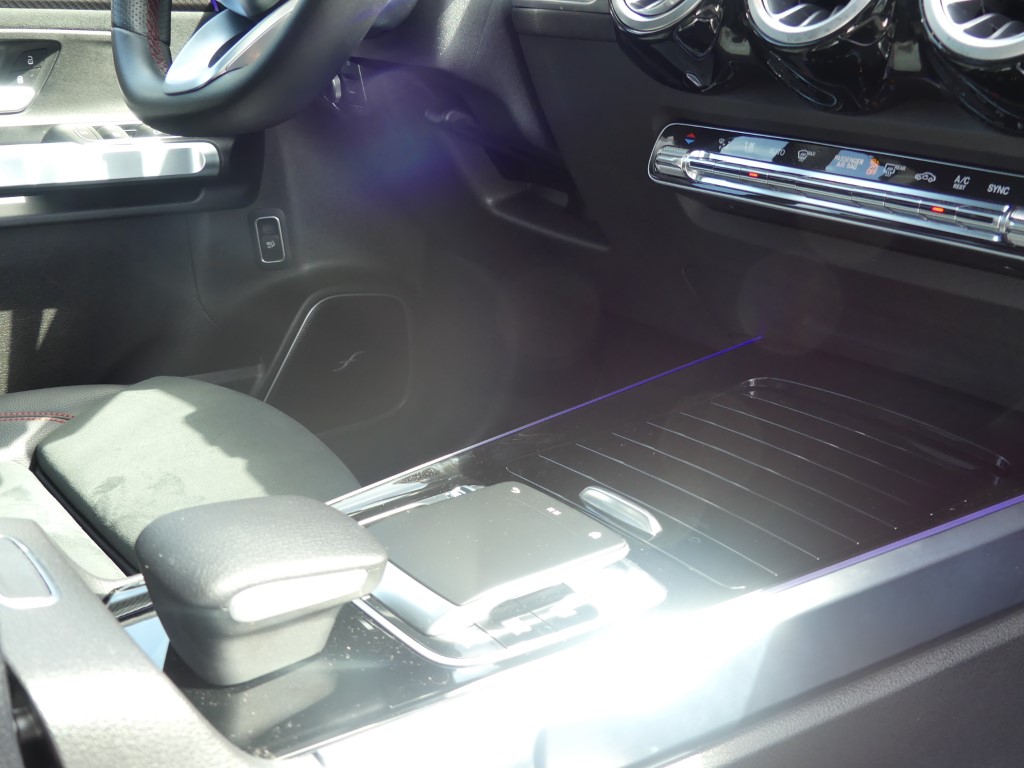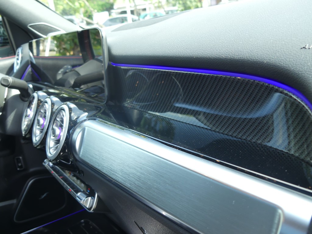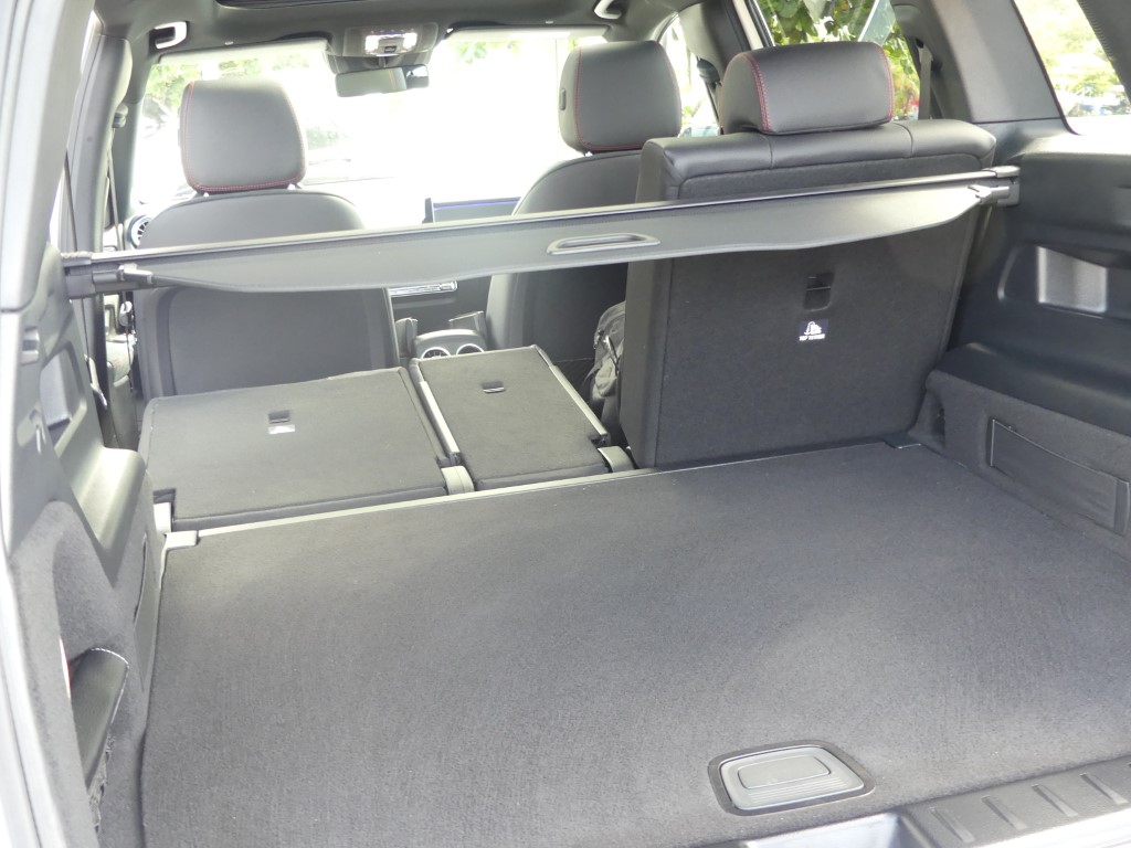 Avec l’AMG Line, le GLB est équipé du plus haut niveau de finition. On a ainsi droit à des placages en aluminium mais aussi en carbone. Les sièges en cuir et Alcantara apportent assurément de la sportivité à cet habitacle tout comme le volant badgé AMG. Mais le point le plus important de ce GLB se trouve à l’arrière. En effet, on y trouve deux places supplémentaires en option. Grâce à une banquette fractionnable 60/40 et coulissante sur 14 cm, on accède étroitement aux places arrières. Rassurez-vous, une personne de taille moyenne pourra s’y glisser après quelques contorsions. Mais ne nous le cachons pas, les enfants prendront un malin plaisir à s’y rendre. Notez que même si nous le classons parmi les compacts, le GLB fait tout de même pour rappel 4,63 mètres de long, ce qui n’est pas rien. Pour vous donner une référence, c’est à peine plus court qu’un Mercedes GLC. Mais c’est cette longueur, et l’empattement de 2,83 mètres, qui permet de dégager un habitacle qui nous a surpris par sa générosité. Il y a d’abord la hauteur générale du véhicule, qui donne une ambiance aérée et lumineuse à bord. En configuration 5 places, l’espace aux jambes offert par la banquette arrière est très au-dessus de la moyenne...
