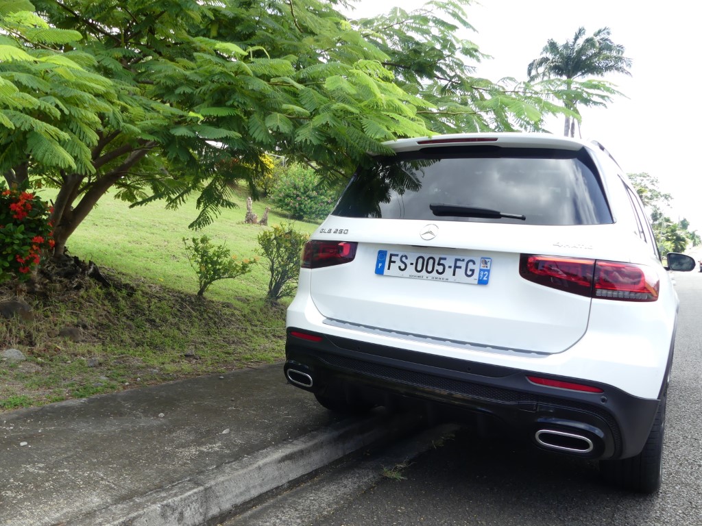 Après notre essai du Nouveau GLA en Martinique quoi de plus normal que de vous proposer dans sa trace celui du GLB qui, toute proportion établie, lui ressemble comme deux gouttes d’eau mais avec une solution 7 places de série en plus… En effet même si les lignes extérieurs du GLB lui sont caractéristiques, il n’en reste pas moins qu’il semble être très simplement le GLA prolongé et s’approche en taille du GLC dans la gamme… Départ de chez Socaumar ou Mercedes Martinique…