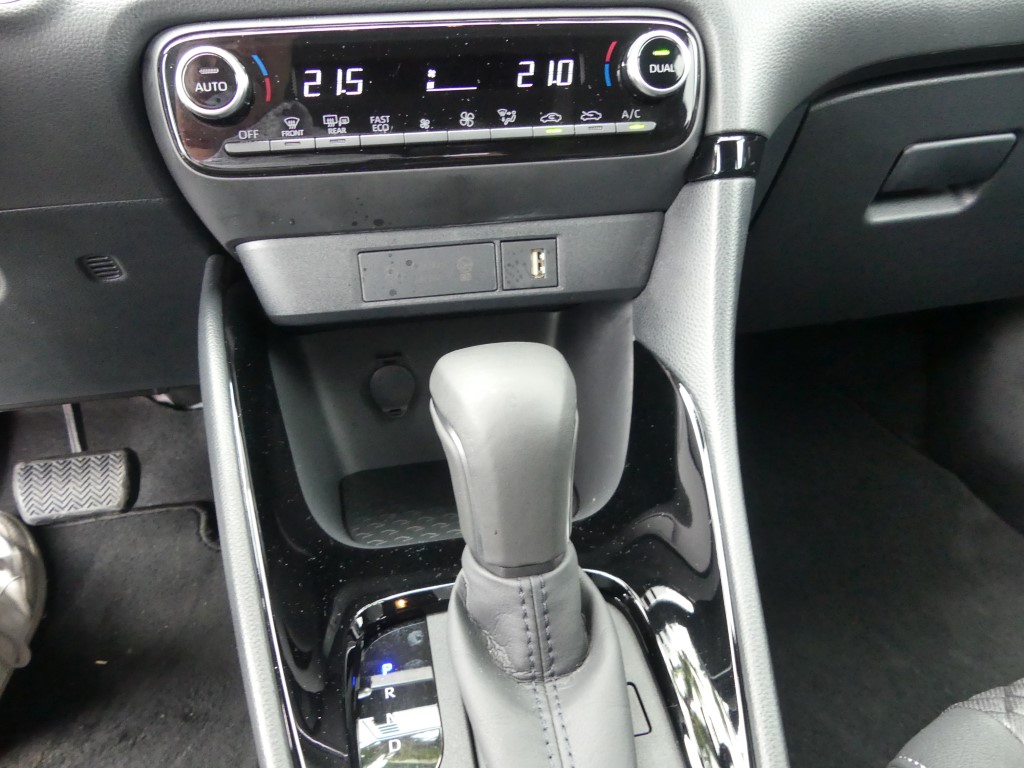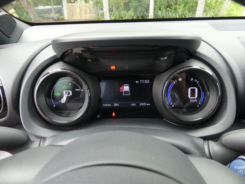 La combinaison du bloc de motorisation thermique et électrique porte la puissance à 116 ch, tandis que les batteries recourent désormais au lithium-ion (nickel métal hydrure sur l’ancien modèle). Plus légère que celle de l’ancienne Yaris, elle gagne en densité énergétique et produit un courant de 177 volts, soit une hausse de 33 volts. Le constructeur annonce que la voiture peut évoluer jusqu’à 130 km/h en mode zéro émission, tout en abaissant sa consommation moyenne à 3,7 l/100 km, soit 1,1 l/100 km de moins que sur le modèle sortant, les émissions de CO2 se limitant à 87 g/km. Enfin, la Yaris conserve la transmission à variation continue bien moins sonore selon moi utilisant des trains épicycloïdaux, préféré par le constructeur.