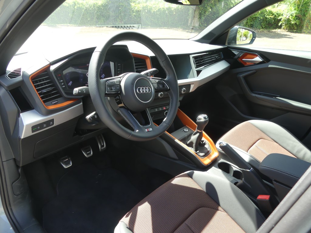 L’habitacle de l’Audi A1 Citycarver est très proche de celui de la version S Line. A l’image de la version la Sportback, la Citycarver peut voir son intérieur égayé par des packs de différentes couleurs (vert menthe, cuivre, orange, gris argenté).