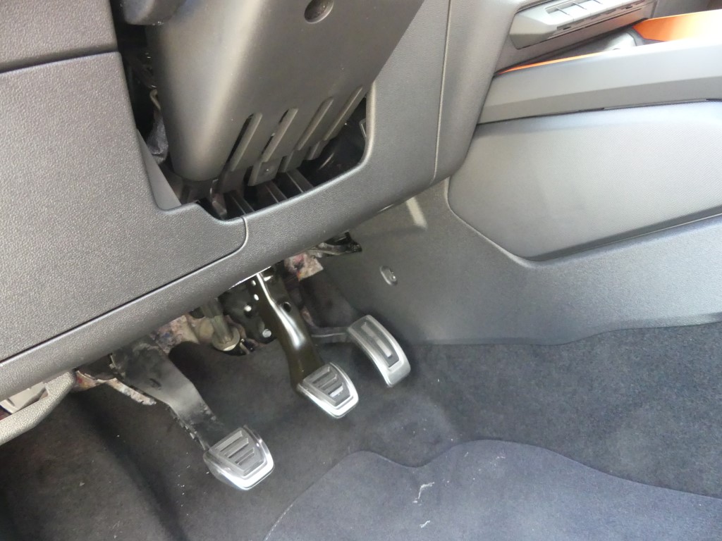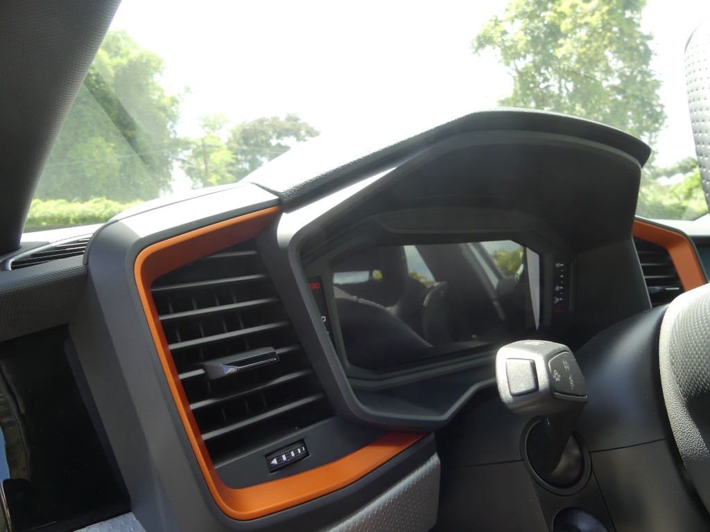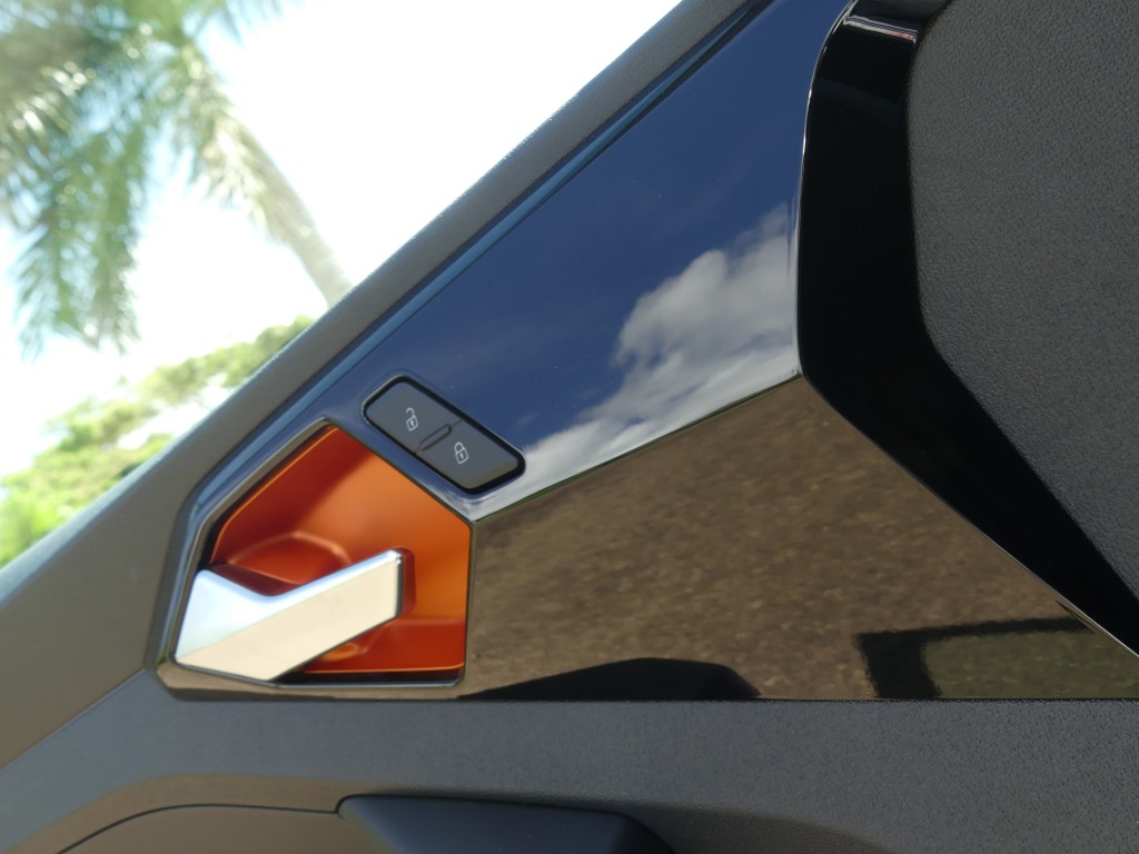 Vous trouviez l’A1 trop basse et trop citadine ? Audi vous a entendu et a sorti le modèle country voir offroad pour sa petite citadine. En Martinique c’est une vraie petite tendance : oui le marché est de plus en plus envahit par les SUV et autres crossovers dont la cote de popularité ne faiblit pas, aussi la marque allemande préférée des martiniquaises à jouée sur les bases de l’A1 pour en faire une baroudeuse des villes. Un peu de garde au sol surélevée par-ci (+ 40 mm), des boucliers différents par là et en un tour de passe-passe, voilà l’A1 devenue citycarver. Et pour être sincère, le coup de baguette des ingénieurs est plutôt réussi. La petite orange (4,05 m de long) a ce qu’il faut d’agressivité et de personnalité pour facilement sortir du lot, sans pour autant en faire trop et verser dans l’ostentatoire. Les sabots de protection en inox sur le bas des pare-chocs renforcent le côté off-road, bien que l’A1 ne soit pas du tout faite pour poser ses roues ailleurs que sur le bitume. C’est d’ailleurs dans son nom, citycarver, que l’on peut traduire grossièrement par « sculpteuse de ville ».