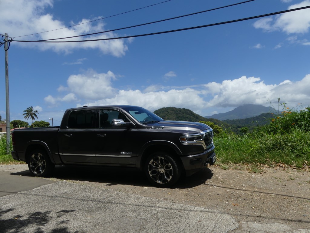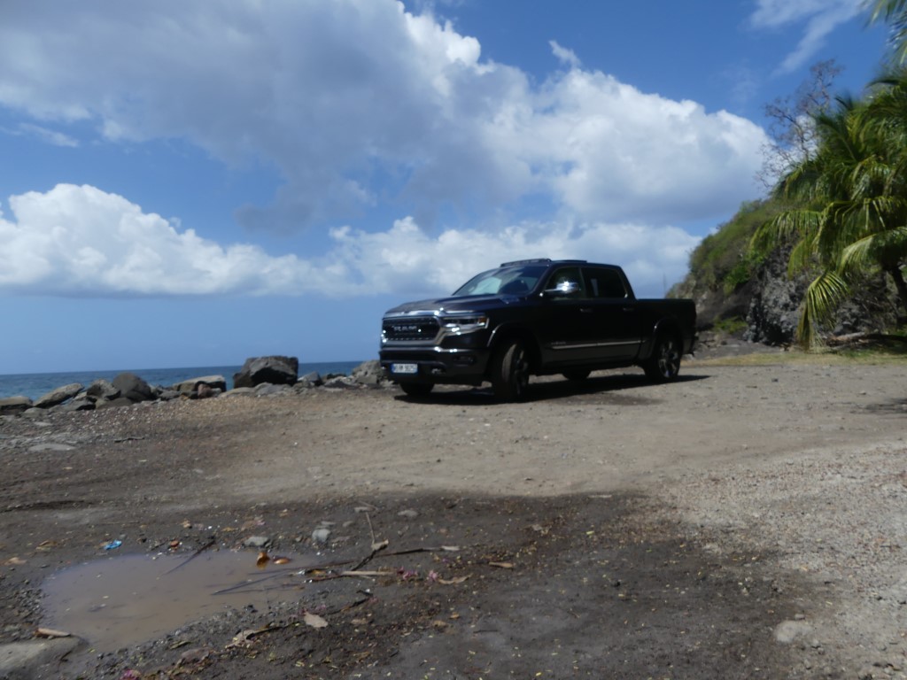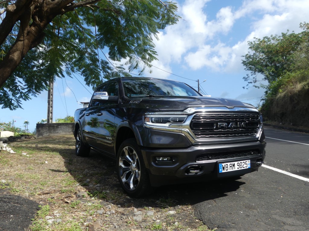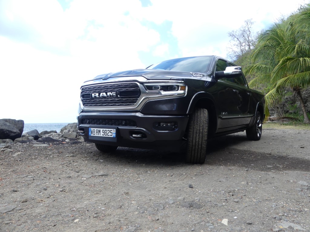 Il y a deux jours je vous proposais dans ce que je vais appeler la semaine Dodge et RAM justement le RAM 1500 et son entrée de gamme !!! Le pickup US de 400 ch m’a épaté par sa force pure et ses capacités de franchissement… Une vraie bête de somme qui joue pourtant le confort et l’agilité une fois les terres battues sous le planché… Un vrai plaisir que d’attraper la poignée de grimpe et se hisser si haut sur la route avec un vrai sentiment de dominer les éléments… Pour parfaire notre essai il nous fallait grimper dans la version 1500 LIMITED du gros et puissant RAM ! Départ du Lamentin pour un nouvel essai Hors Normes !