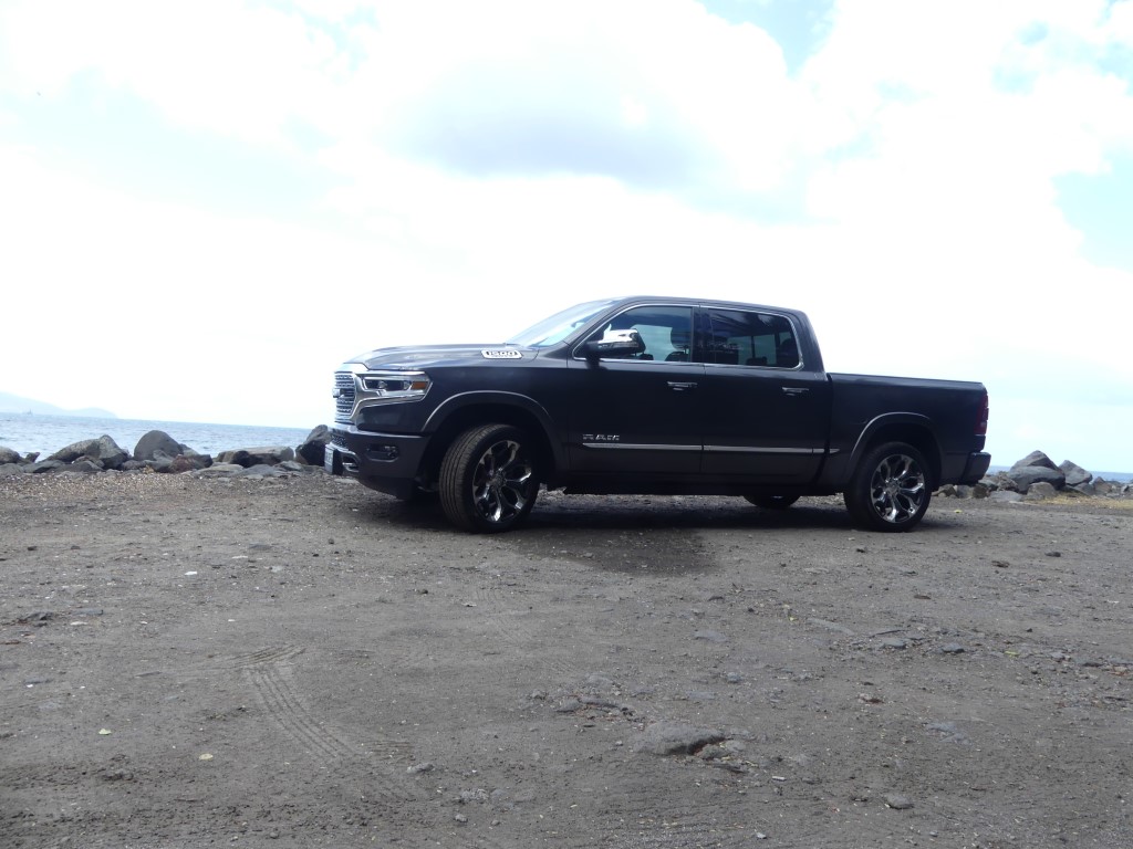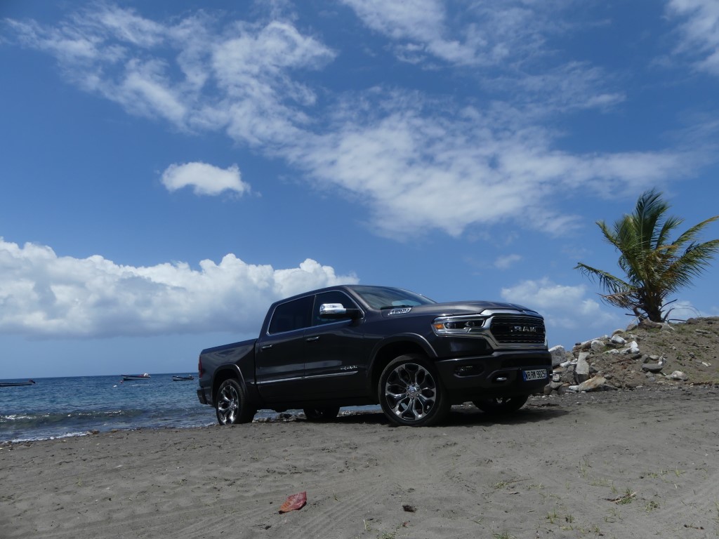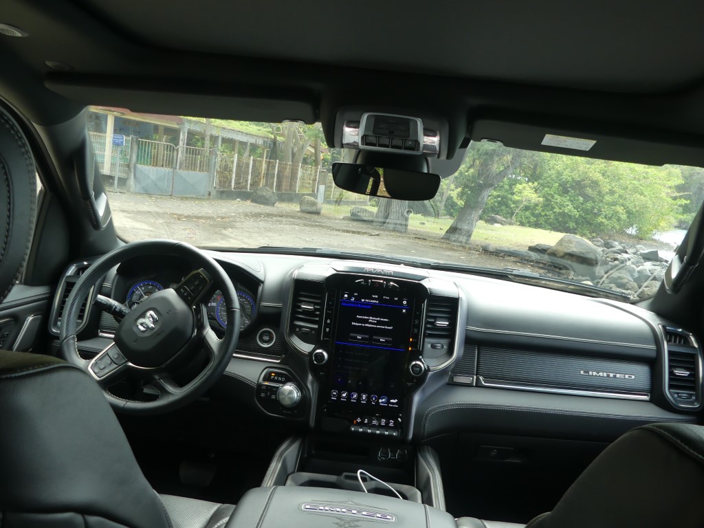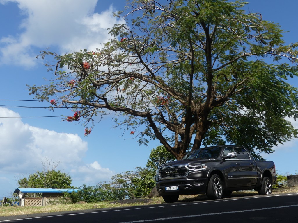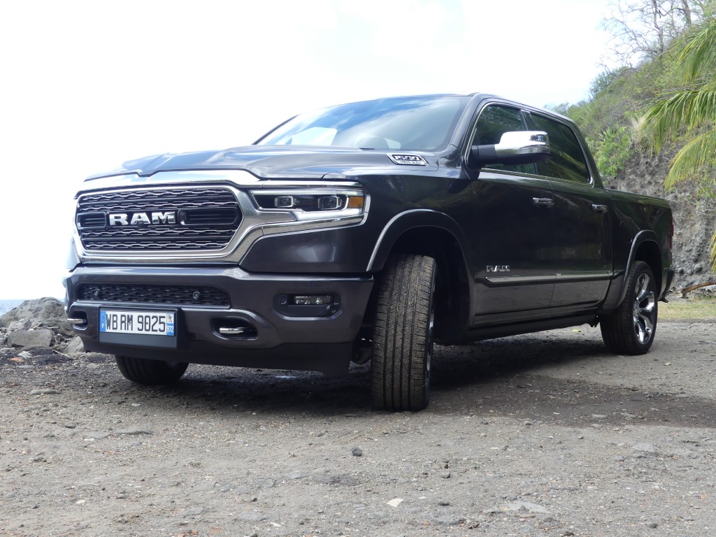Il y a deux jours je vous proposais dans ce que je vais appeler la semaine Dodge et RAM justement le RAM 1500 et son entrée de gamme !!! Le pickup US de 400 ch m’a épaté par sa force pure et ses capacités de franchissement… Une vraie bête de somme qui joue pourtant le confort et l’agilité une fois les terres battues sous le planché… Un vrai plaisir que d’attraper la poignée de grimpe et se hisser si haut sur la route avec un vrai sentiment de dominer les éléments… Pour parfaire notre essai il nous fallait grimper dans la version 1500 LIMITED du gros et puissant RAM ! Départ du Lamentin pour un nouvel essai Hors Normes !