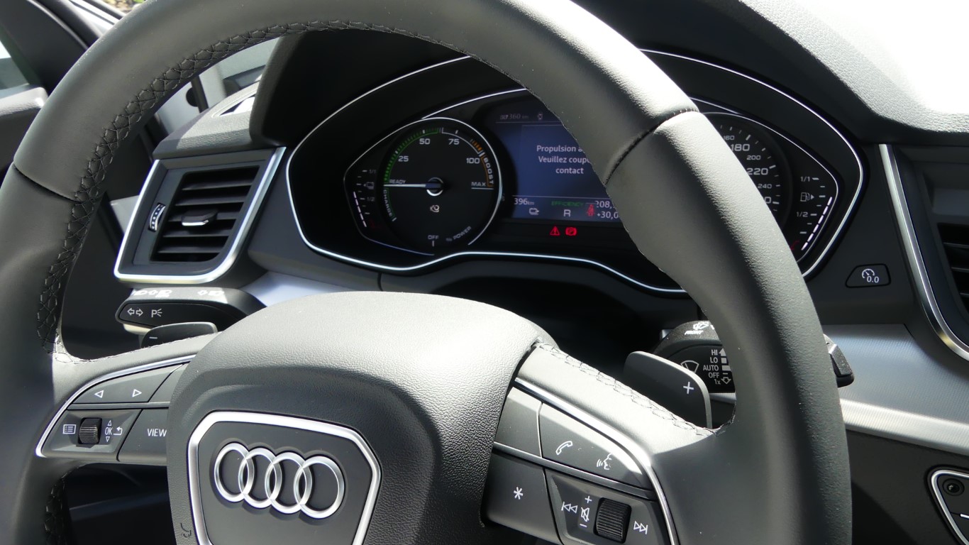 La Q5 50 TFSI-e est doté d’une transmission intégrale avec technologie ultra combinée à un moteur électrique. Le contrôle intelligent du système de transmission intégrale fonctionne de façon prédictive, grâce à des capteurs et à l’analyse continue des données collectées sur la dynamique de conduite et le comportement du conducteur. Le système de transmission intégrale quattro est ainsi toujours prêt lorsqu’il est nécessaire. Lors que la charge est faible et que le coefficient de friction entre les roues et la surface de la route est suffisant, la transmission de la puissance aux roues arrière est désactivée et les roues avant prennent le relais avec une efficience élevée. La transmission intégrale est désactivée lorsqu’elle n’est pas requise, mais elle reste disponible à tout moment. Elle est réactivée rapidement et automatiquement soit avec l’Audi drive select qui permet aux conductrices et conducteurs de régler non seulement le caractère du moteur mais aussi les propriétés de la transmission intégrale afin qu’ils correspondent à leurs préférences.