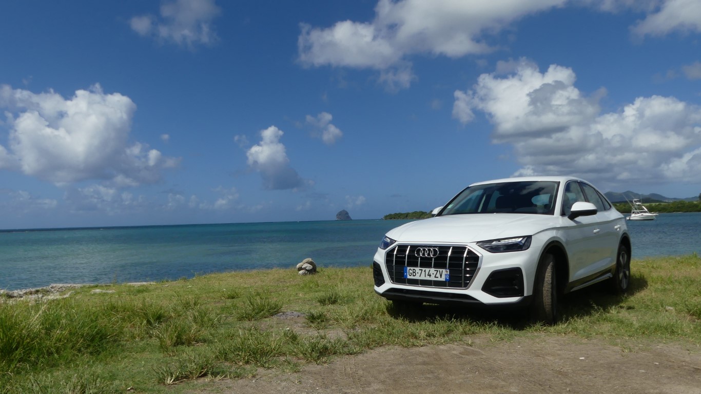 Sur la route je suis époustouflé par l’équilibre quasi parfait du Q5 TFSi-e qui allie agrément de conduite, et sportivité aussi grâce à l’AUDI Dive Select… La tenue de route tout comme la position haute du conducteur rassure dès la prise en main… L’Audi Q5 TFSi-e vire à plat sans complexe il impose la technicité du réglage chassis aux suspensions d’une rare efficacités... Le Q5-e se montre encore plus performant sur les petites routes sinueuses de Saint-Joseph, il s’accroche à l’asphalte et assure un maintient de voix digne de la réputation de son système Quattro... Notre motorisation hybride pour rappel est constituée d’un bloc thermique essence de 299 ch et d’un couple de 450 NM. L’Audi Q5 Sportback hybride n’aura aucun mal à se relancer ou à doubler quand le besoin s’en fera sentir. Difficile de trouver aussi efficient sur le marché mais c’est une histoire de choix et d’objectivité ma note est donc à la hauteur de mon essai… A vous de vous faire un avis définitif en tentant l’essai du Q5 50 TFSi-e chez AUDI Martinique il vient d’arriver ici !!!