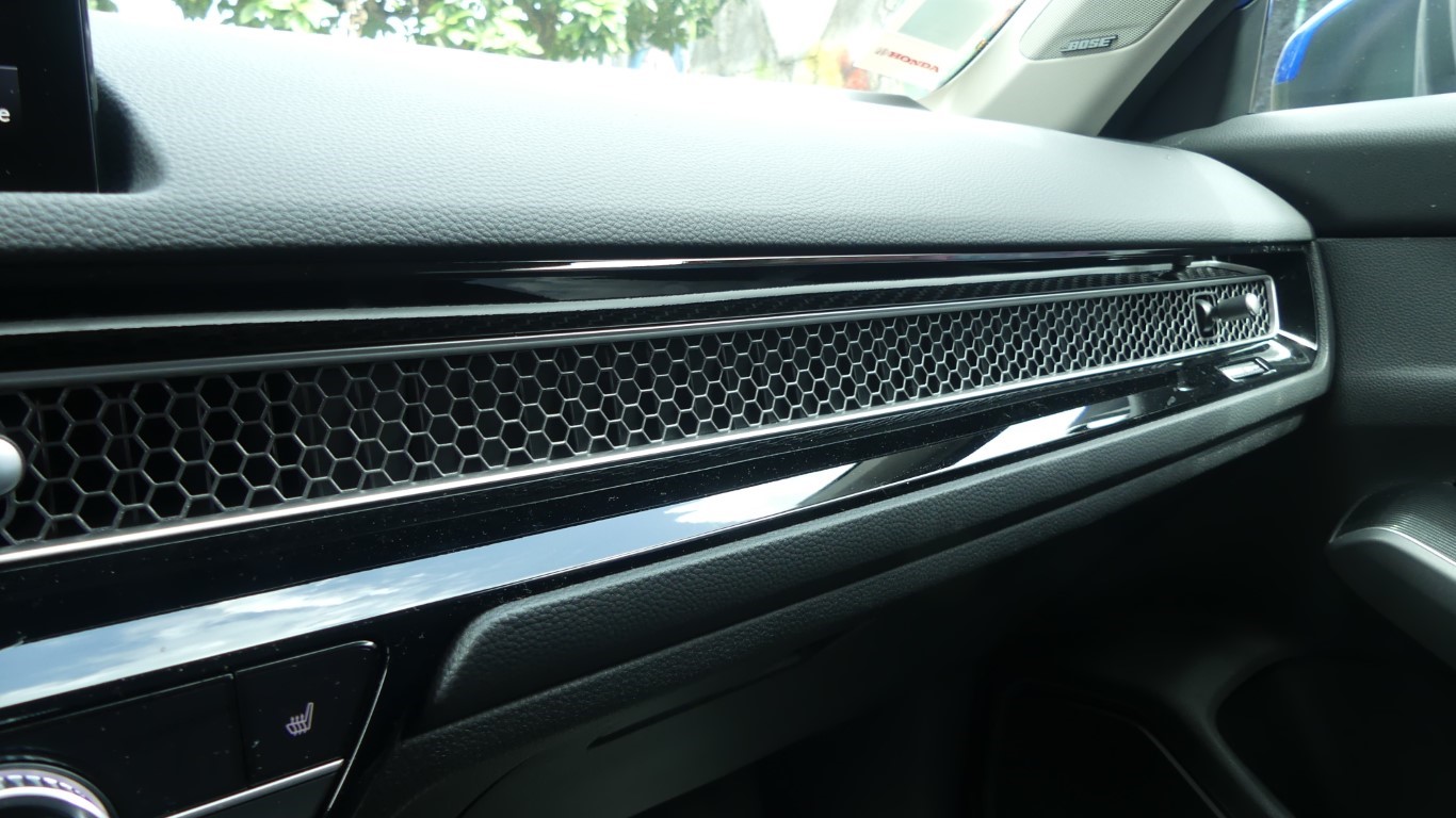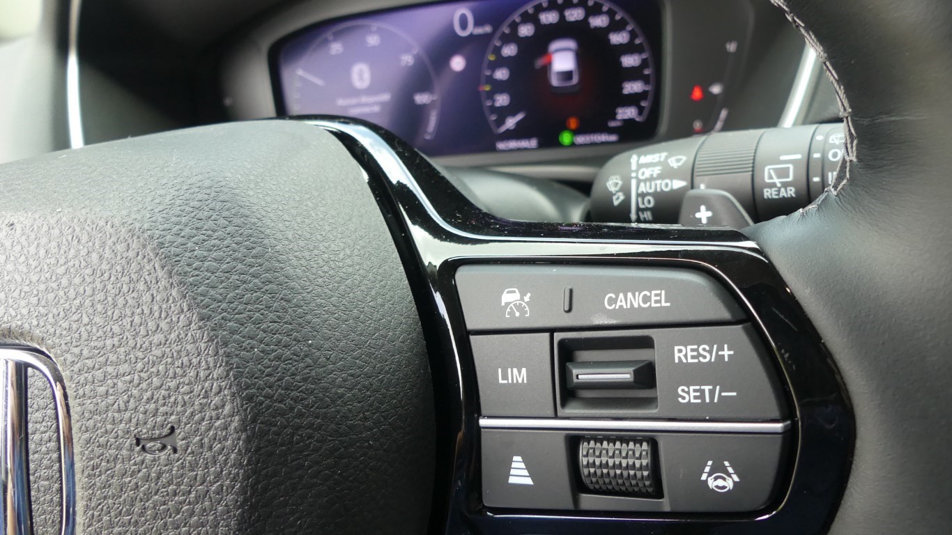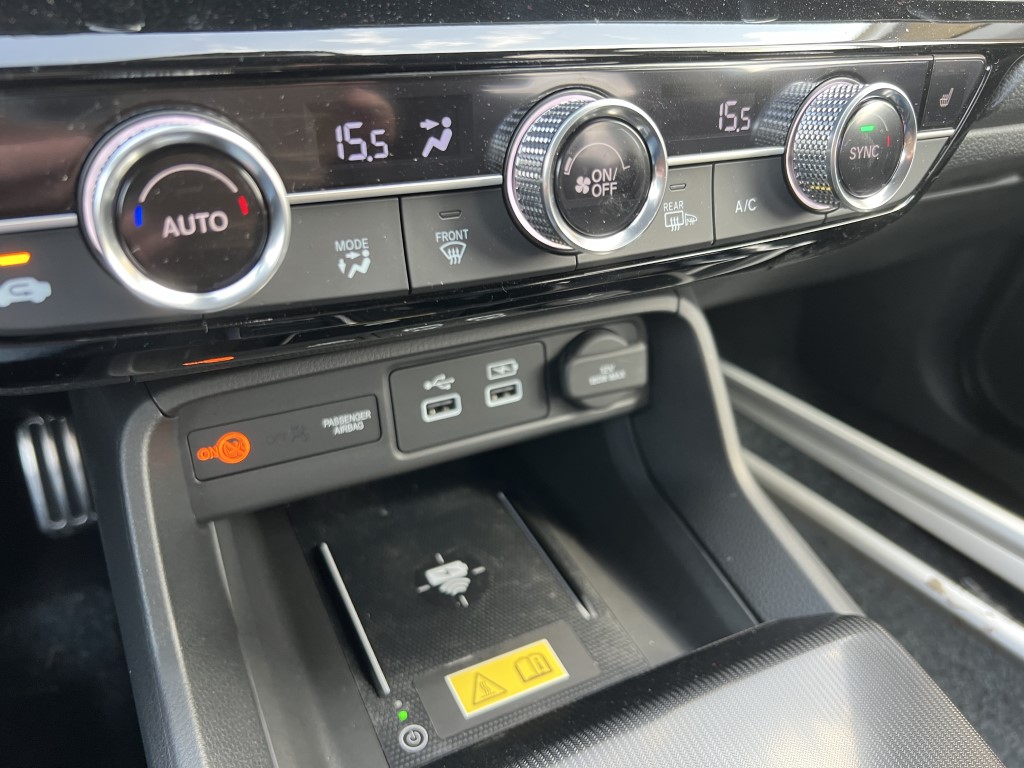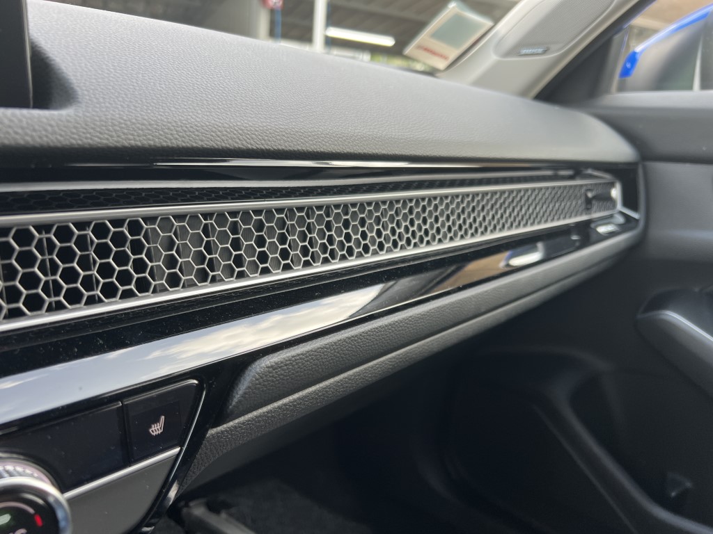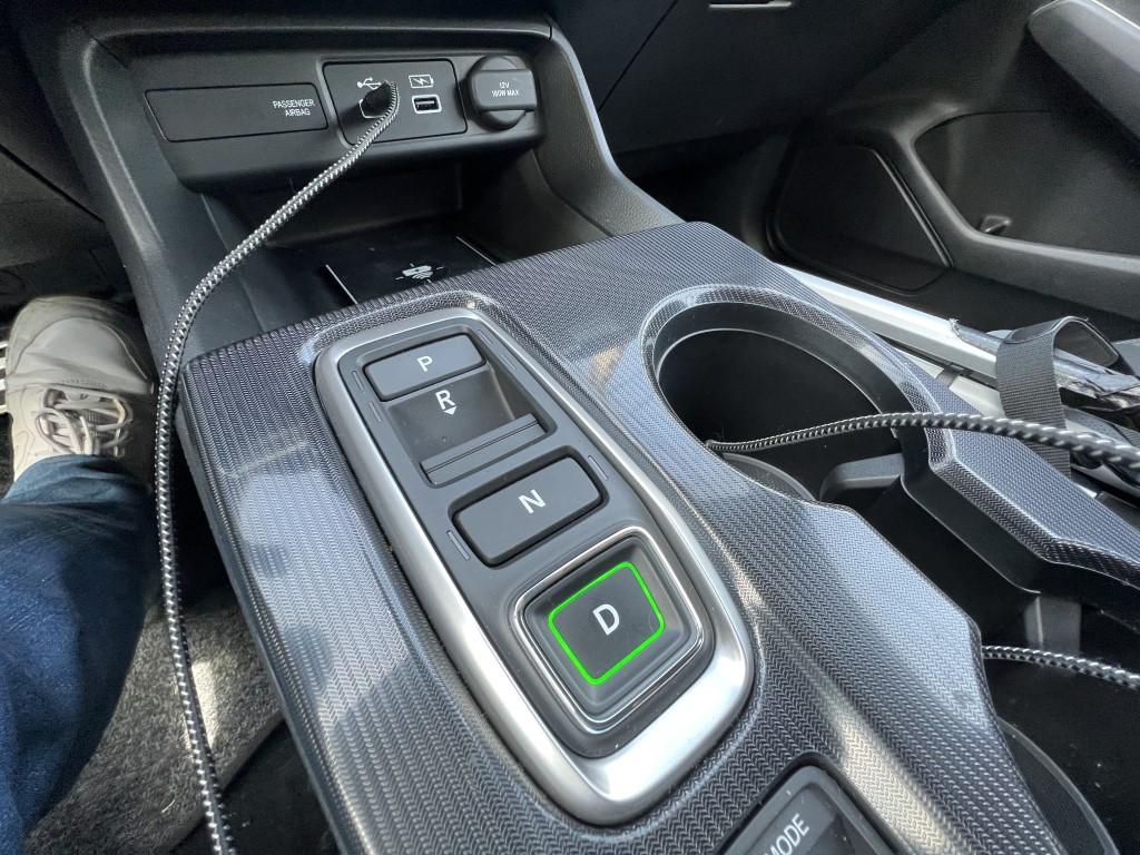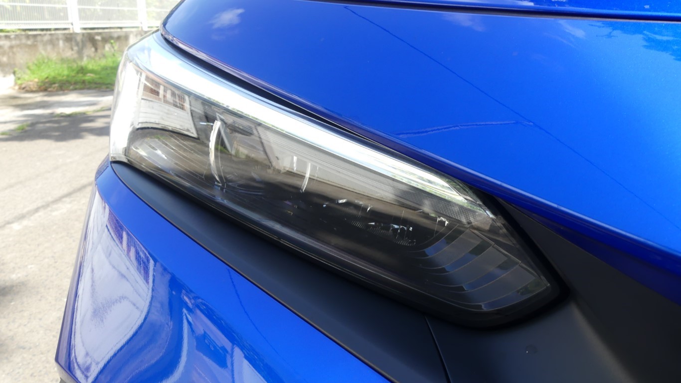 De prime abord le système hybride de la Civic n'est pas exactement le même que celui du CR-V, par exemple. Le 2 litres essence est entièrement nouveau, et toute la partie électrique optimisée : recharge plus efficace de la batterie, elle-même plus légère et plus puissante, tout comme le moteur électrique. Mais surtout, le système hybride réagit instantanément aux sollicitations de l'accélérateur, sans la réaction souvent décalée des « full hybrid ». Mais je m'arrête sur le style, HONDA nous propose des lignes de pare-chocs plus expressives, avec notamment des éléments noirs qui assoient l'avant de la voiture et une calandre élégante en nid d'abeilles complétée par des phares à leds assez fins. Le dessin des plis de capot a été retravaillé et les montants de pare-brise ont été reculés pour s'aligner avec le centre des roues et donner une allure plus élancée. Au final, en dépit d'un dessin plus classique, la Civic e:HEV gagne en élégance et dynamisme. On note toutefois des dimensions assez élevées pour une compacte : 4,55 m de long, 1,80 m de large et 1,41 m de haut. La Toyota Corolla lui rend presque 20 cm en longueur. L'empattement généreux de 2,73 m offre cependant un habitacle spacieux mais très sobre.