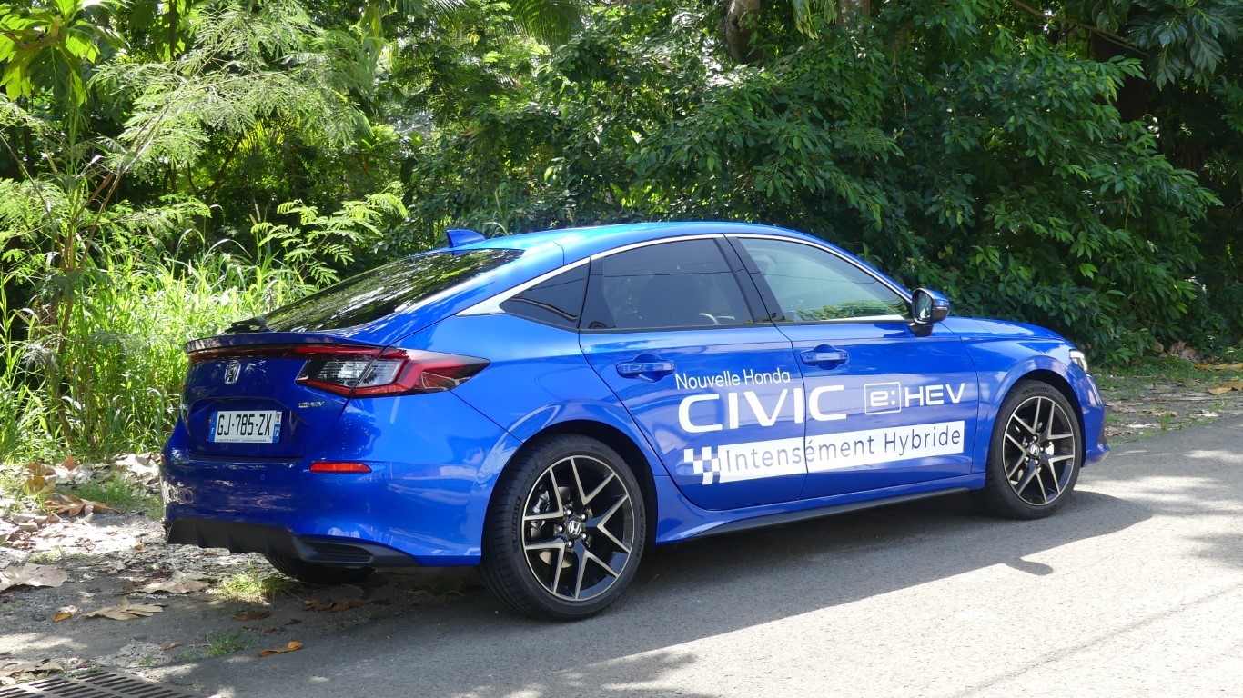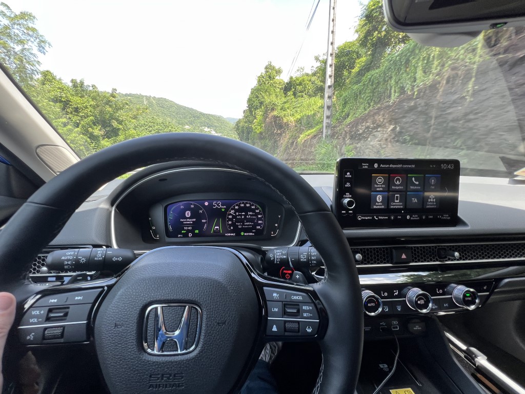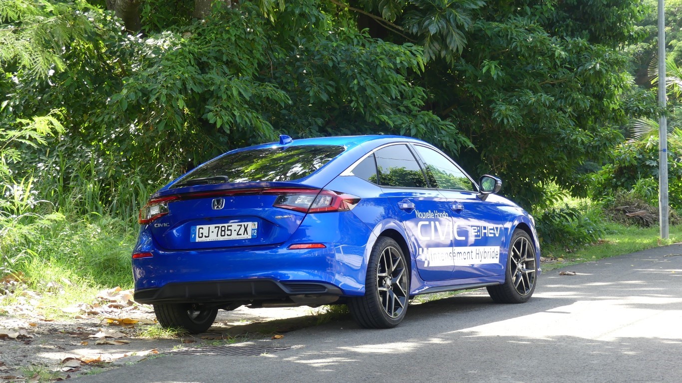 A Fort de France et généralement dans nos bourgs, la Civic e-HEV roule en mode électrique la majorité du temps. Quand le conducteur sollicite l’accélérateur, la voiture passe en mode hybride. C’est alors toujours le moteur électrique de traction qui actionne seul les roues, tandis que le moteur thermique génère la puissance électrique requise, sans être relié mécaniquement aux roues. Sur autoroute, en revanche, le 2.0l prend le relais si besoin et s'accouple au train avant tout en conservant l’assistance du moteur électrique, si nécessaire.