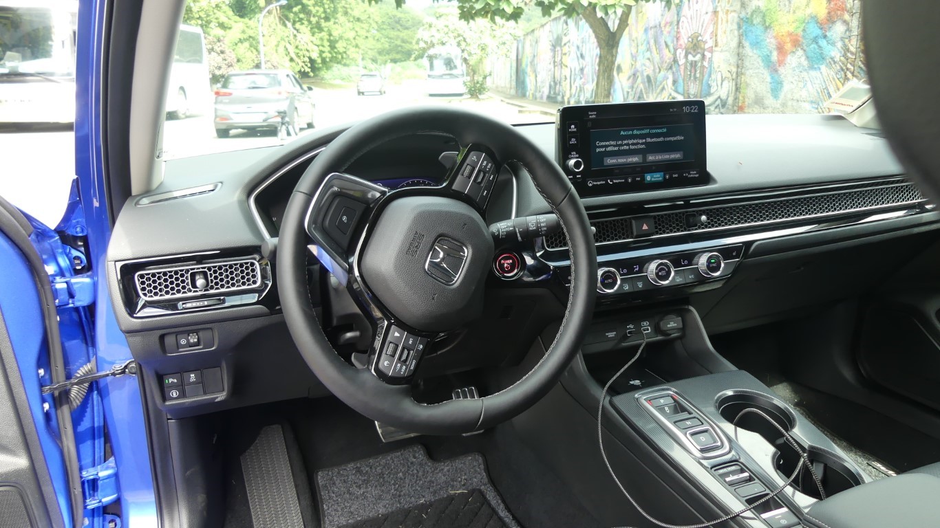 Les sièges sont bien conçus, procurent un bon confort pendant de longs trajets, et bien que l’on ait l’impression d’être assis près du sol – comme dans plusieurs générations précédentes de la Civic – on se sent à l’aise au volant. Honda a savamment résisté à la tentation d’installer le pare-brise à un angle trop prononcé, alors pas besoin de se pencher la tête en montant à bord l’avant, comme c’est le cas dans d’autres berlines compactes concurrentes. À 419 litres, le volume du coffre est presque un record pour le segment.