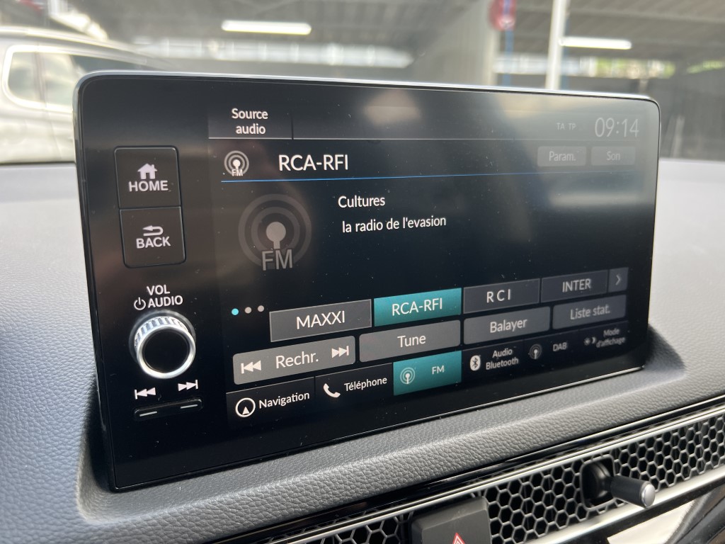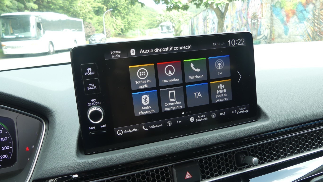 La Civic e:Hev est tout simplement une des voitures les mieux équipées de série, ce dès son entrée de gamme. La liste de tous ses équipements serait trop longue à dresser ici. Principalement, on profite de la reconnaissance des panneaux de signalisation, le freinage d'urgence, un régulateur de vitesse adaptatif avec assistance dans les embouteillages et centrage dans la voie, la détection d'angles morts, les radars de stationnement, la caméra de recul, l'entrée dans le véhicule et le démarrage sans clef, un écran tactile 9 pouces, des phares à leds automatiques, la climatisation bi-zone, quatre ports USB et des sièges avant chauffants avec réglages électriques pour le conducteur.