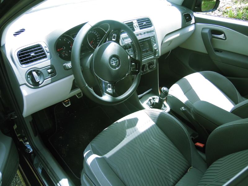nous conforte dans l’idée que nous entrons dans une petite Golf… Oui mais… Si la firme de Wolfsburgsemble ne pas trop changer les lignes si connues et apprécier de la petite VW, elle propose aux aficionados du modèle une véritable et grande révolution sous le capot et en terme de sécurité active… Sur un marché très porteur Volkswagen retouche légèrement les lignes extérieures de sa citadine polyvalente histoire de la rajeunir quelque peu mais vise manifestement sur ce segment à grimper d’un cran sur la qualité d’équipement et la motorisation… Bien vu… Pas de révolution esthétique donc. Pour la touche premium, la Polo restylée gagne des baguettes chromées entre les antibrouillards et sur la calandre. Alors que pour la touche sportive, les boucliers avant/arrière ont légèrement été des bi-Xénon à LEDs en option… Les plus gros changements ont lieu sous le capot avec l’apparition du trois-cylindres 1.0 de la Up (60 ou 75 ch) en entrée de gamme.Les 1.2 TSI 90 et 105 ch seront remplacés par de prometteuses versions turbo du trois-cylindres 1.0 (90 et 110 ch), réponsedu groupe Volkswagen au 1.0 Ecoboost de Ford et aux 1.2 THP de PSA.Le 1.4 TSI ACT (désactivation partielle des cylindres) de laPolo BlueGTvoit sa puissance passer de 140 à 150 ch (comme sur sa cousineSeat Ibiza ACT). Enfin, les optiques avant et arrière ont été redessinées, les projecteurs antérieurs gagnant même des motorisations répondent à la norme Euro 6.Volkswagen POLO 1.2l TSi 90 : La fée du logis !!!