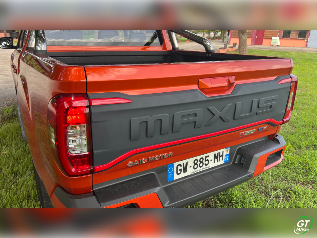 Le Pickup MG dégage décidément une impression de robustesse et bénéficie d'une construction et d'assemblages à la hauteur du marché. Il n'y a pas de défauts majeurs d'ajustement à noter sur le Maxus T90 EV ; Le design extérieur est presque impeccable. Le "presque" est dû à l'alignement parfois incohérent des lettrages chromés à l'arrière, un détail de finition qui peut paraître bon marché, surtout que cela varie d'un véhicule à l'autre. Cependant, le T90 EV impressionne par sa stature imposante avec des dimensions généreuses : il mesure 5,37 mètres de long, 1,90 mètre de large et 1,81 mètre de haut, avec un empattement de 3,15 mètres, comparable à celui d'un Volkswagen Amarok ou d'un Ford Ranger. La benne est spacieuse et bien protégée grâce à son revêtement en polypropylène, mesurant 1,485 x 1,510 x 0,53 mètres, bien que l'accès puisse être difficile en raison du la battant arrière trop lourd. En somme, le seul ajout souhaitable pour ce T90 EV serait un espace de rangement supplémentaire à l'avant.