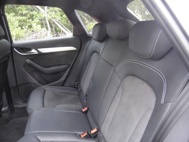 Bruno Symphor responsable commercial AUDI Martinique : "Les avantagesdu nouveau Q3 sont comme vous le découvrez sur la ligne du véhicule… Plus moderne avec une face avant entièrement revue… Cette nouvelle identité stylistique avec la calandre Singleframe agrémentera nos futurs modèlescomme le Q5 qui arrivera en concession début 2017… Le Q7 déjà bénéficiaire de cette nouvelle ligne préfigurait déjà ce restylage dans notre nouvelle gamme… Techniquement le véhicule à opéré également une mutation notable alors que le prix du véhicule est en légère baisse par rapport à l’ancien modèle… Nos clients apprécient… En diesel sont dorénavant disponiblesun 150 ch en 2.0l alors que la précédente version délivrait 140 ch et un 184 ch qui remplace les 177 ch du Q3 précédent… C’est ce dernier modèle que Grantomobil.fr va essayer aujourd’hui… Côté confort de conduitele nouveau Q3 bénéficie duDrive select dans sa version S-line entre autre… Il donne la possibilité d’adapter le Q3 à votre mode de conduite, de le laisser gérer le mode de conduite en automatique ou bien, en mode sport, de tirer la quintessence des 184 ch couplés à la boîte S-Tronic… Le nouveauQ3 est encore plus polyvalent et silencieux… Le confort de conduite atteint des sommets…C’est une AUDI !!! Côté tarifs le nouveau Q3 1.4 Tfsi de 150 ch boîte mécanique en finition attraction est à vous pour 31500 euros jusqu’à la fin du mois de juin… Je précise que la dotation en équipements sur la nouvelle génération de Q3 à largement évoluée et dès l’entrée de gamme il bénéficie des phares Xenons, du détecteur de pluie, de l’accoudoir central et de l’allumage automatique des feux… La monte est de 17 pouces" Audi Q3 restylé vu par Grantomobil.fr Le Q3 restyléprofite des xénons en série sur toutes les versions donc, avec des feux de jour à led. Cette version d’essai est dotée de l’option projecteurs full led dont l’efficacité nous avait déjà bluffés lors de l’essai de l’Audi A3 Sportback à sa présentation.