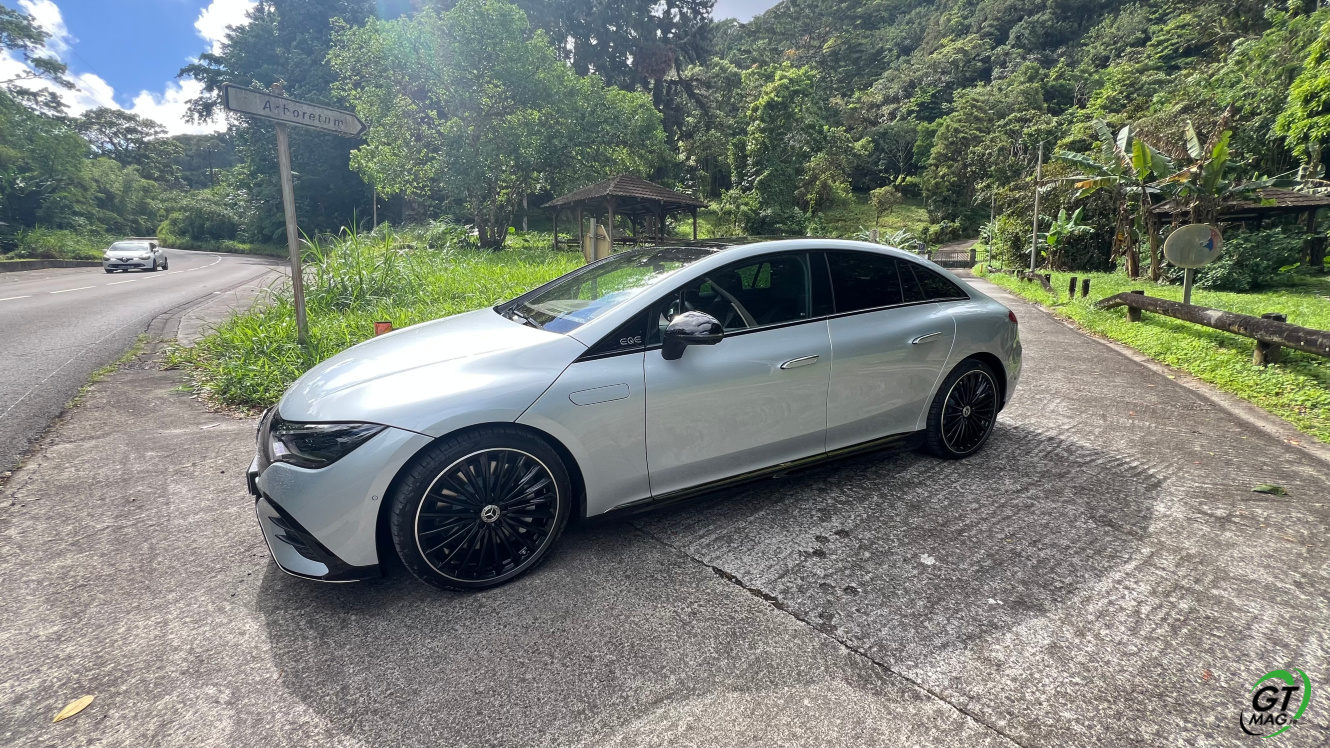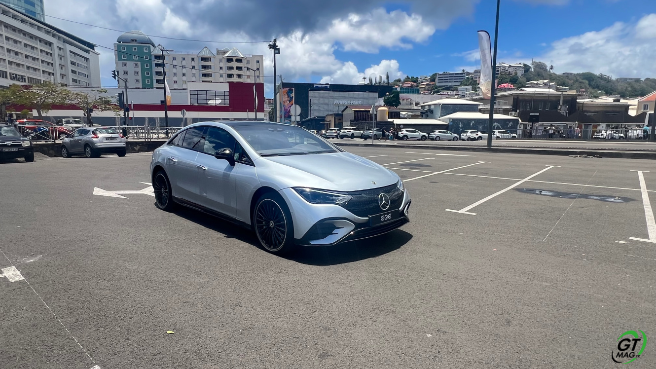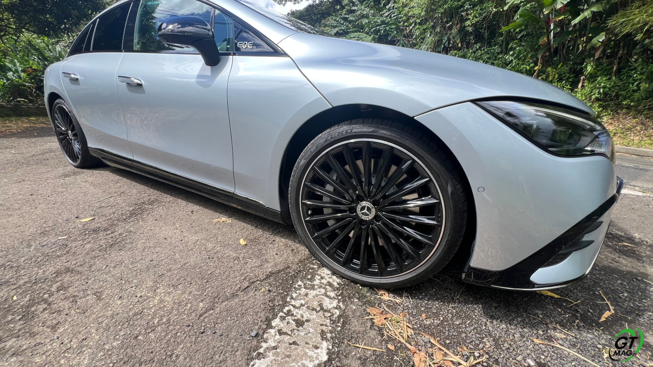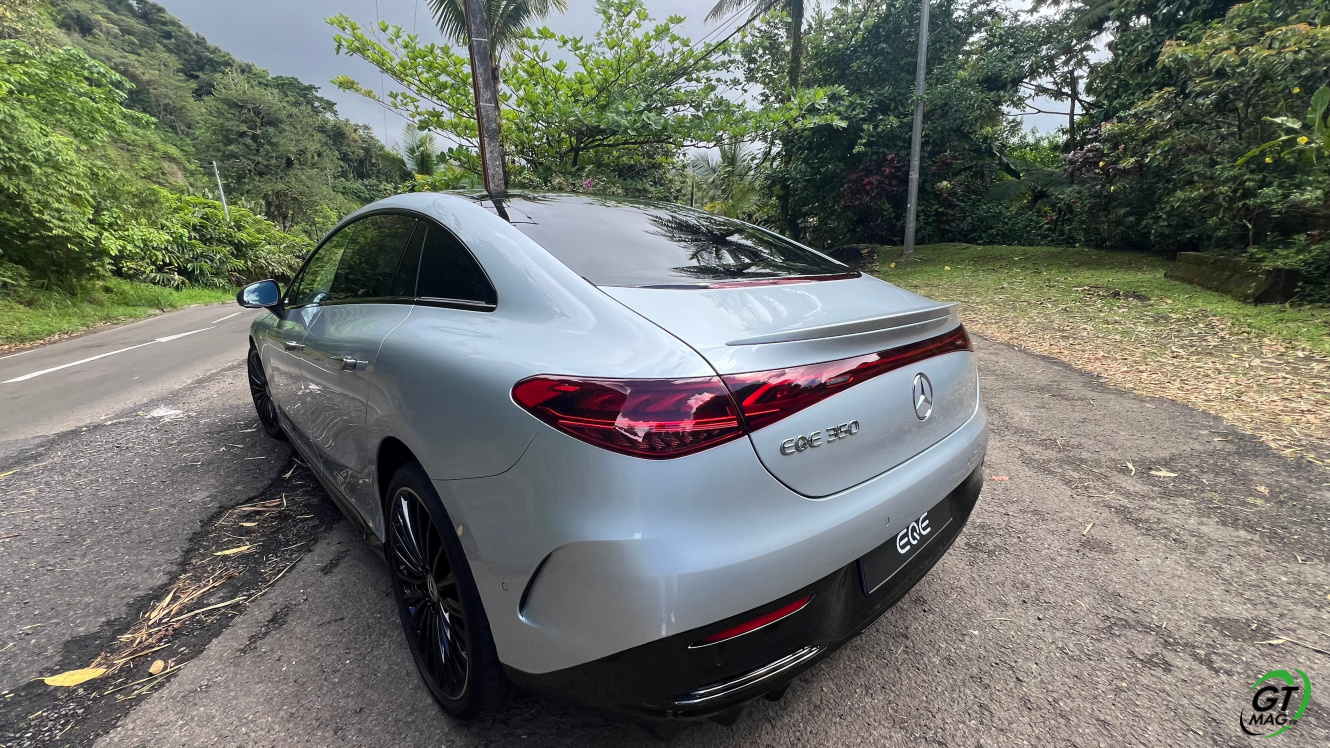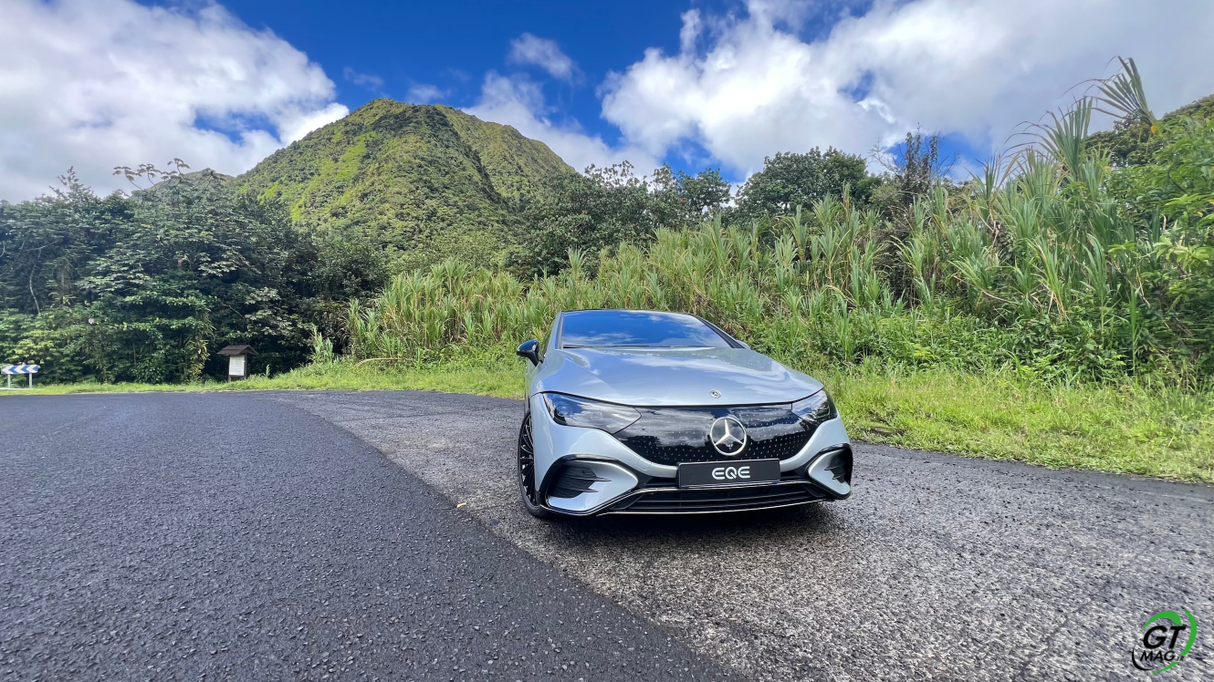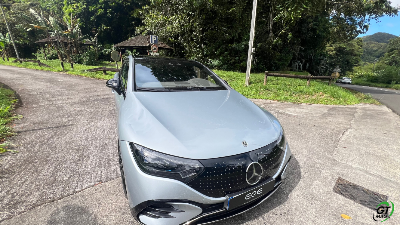 L’EQE est le deuxième modèle basé sur la plateforme 100 % électrique EVA2 après l’EQS. Elle intègre une batterie de 90,5 kWh de capacité lui offrant une autonomie comprise entre 567 et 654 km. Le moteur synchrone à aimants permanents, placé sur l’essieu arrière, développe 215 kW, soit l’équivalant de 292 ch. Il est alimenté par un bloc de batteries lithium-ion d’une capacité de 89 kWh net. Le couple de 565 Nm offre une réserve suffisante pour faire face à tout dépassement. En Martinique ou sur rocade et autoroute, les consommations moyennes relevées varient entre 18,5 et 20,5 kWh/100 km. De quoi parcourir 510 km en roulant très économiquement, soit sensiblement moins que les 650 km annoncés. Avec 6,4s sur le 0 à 100 km/h, l’EQE accélère correctement pour une limousine de 2.3 tonnes. Une recharge de 10 à 100% prend environ 8h30 sur une borne 11 kW et 5h sur une borne 22 kW.