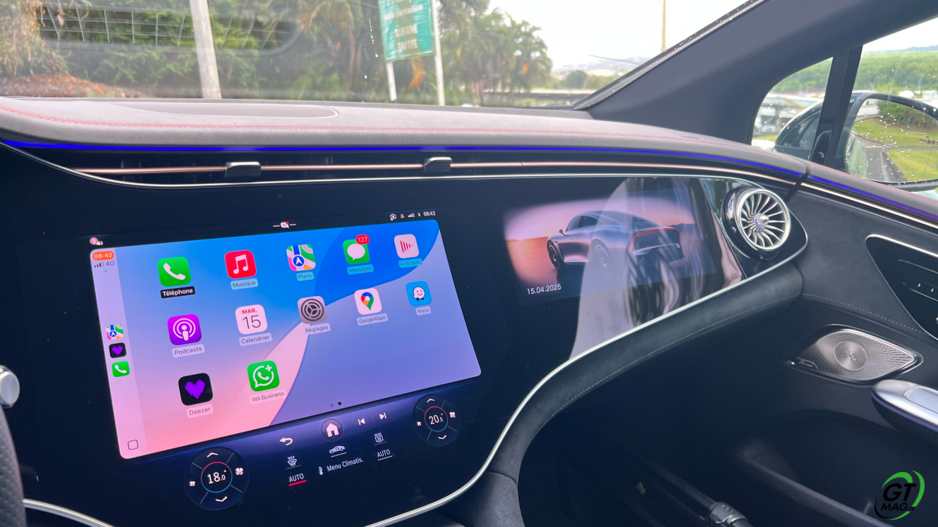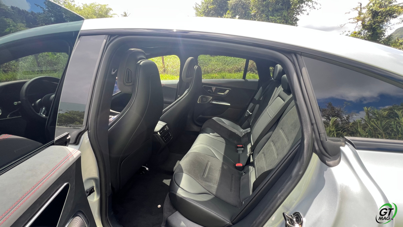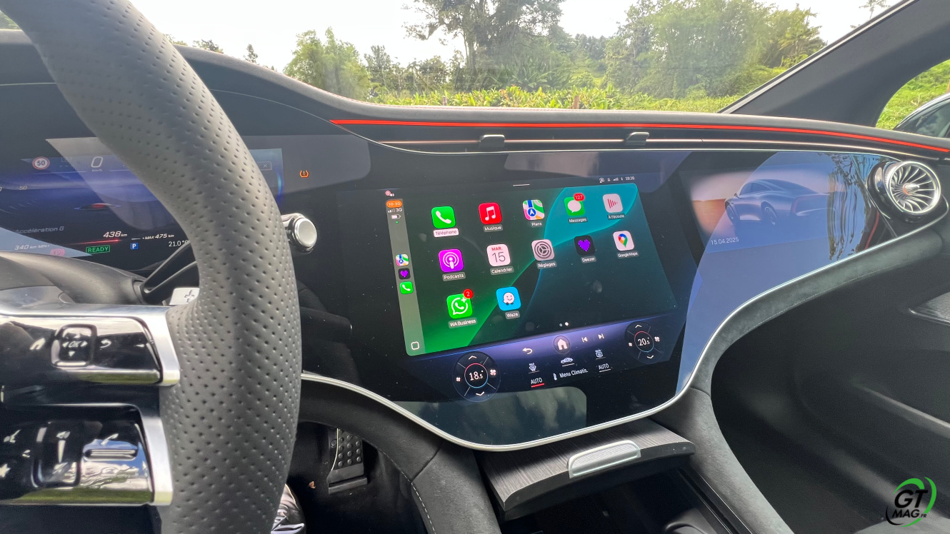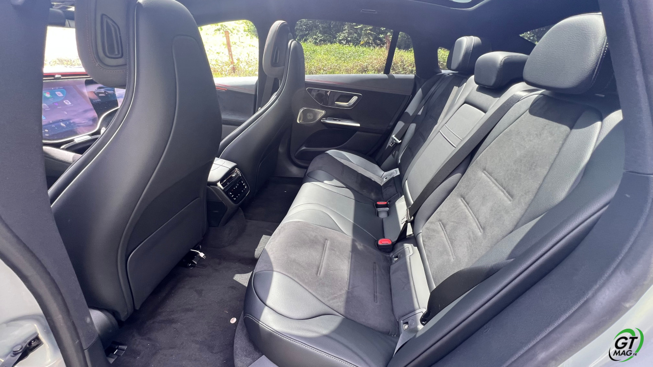 A bord Les capacités du système d’infodivertissement MBUX sont particulièrement étendues, d’autant plus que l’utilisation est assez conviviale même pour les profanes. Le pack AMG Line rajoute une sellerie Sport avec des dossiers un peu plus enveloppants sans être des sièges baquets non plus. L’instrumentation numérique est claire et lisible, tandis que l’écran tactile de 12,8 pouces assure une expérience multimédia fluide avec une connectivité sans fil Apple CarPlay et Android Auto. La climatisation est gérée de manière efficace dans l’habitacle, et le régulateur de vitesse adaptatif ainsi que la caméra de recul ajoutent des fonctionnalités pratiques à l’expérience de conduite. L’affichage tête haute compris dans l’option Pack Premium Plus améliore la sécurité et la visibilité. Avec son empattement de 3,12 mètres de long, soit l’un des plus généreux du segment des berlines électriques, la Mercedes EQE offre de l’espace aux passagers arrière, bien que ce ne soit pas vraiment extraordinaire pour une berline d’environ 5 mètres de long. En ce qui concerne le coffre, Mercedes annonce propose 430 litres un peu juste…