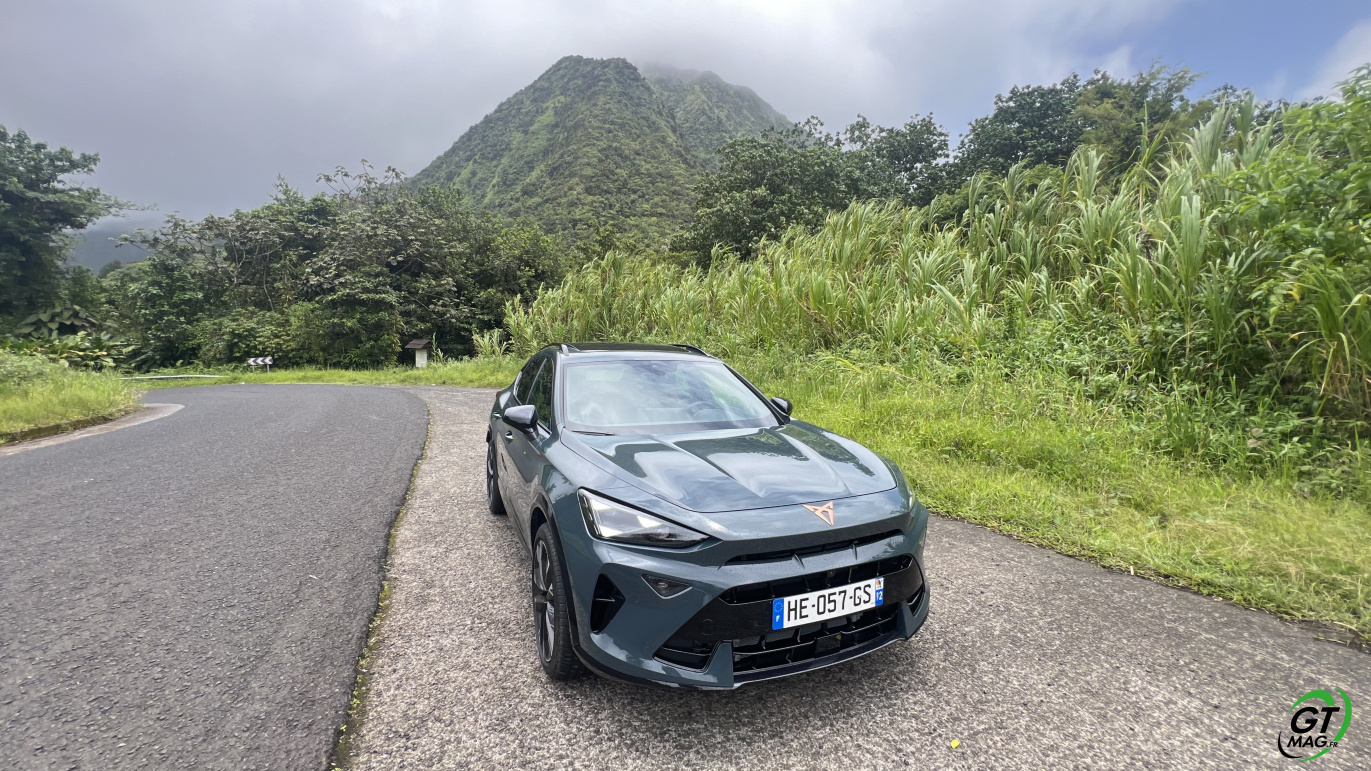 Intérieur digne du haut de gamme, lignes agressives pour rappeler que notre époque est plutôt aux SUV Sportifs la Martinique n’échappe pas a cette tendance mondiale… Finalement la CUPRA Formentor à tout pour plaire… Sur nos route, elle avale l’asphalte goulûment en restant collé à l’itinéraire choisi par son pilote et ne bronche pas d’un centimètre sauf à rattraper quelques erreurs de placements trop risqués avec ses aides à la conduite… Le confort visuel et le confort de tenue de route rappelle les impératifs de la marque ibérique soit : proposer une belle auto agressive non sans rappeler qu’elle est faite aussi pour accélérer fort même avec ses 150ch… Bien-sur le 272 est au fond de ma pensée tant le CUPRA FORMENTOR est génétiquement taillé pour envoyer de la cavalerie…