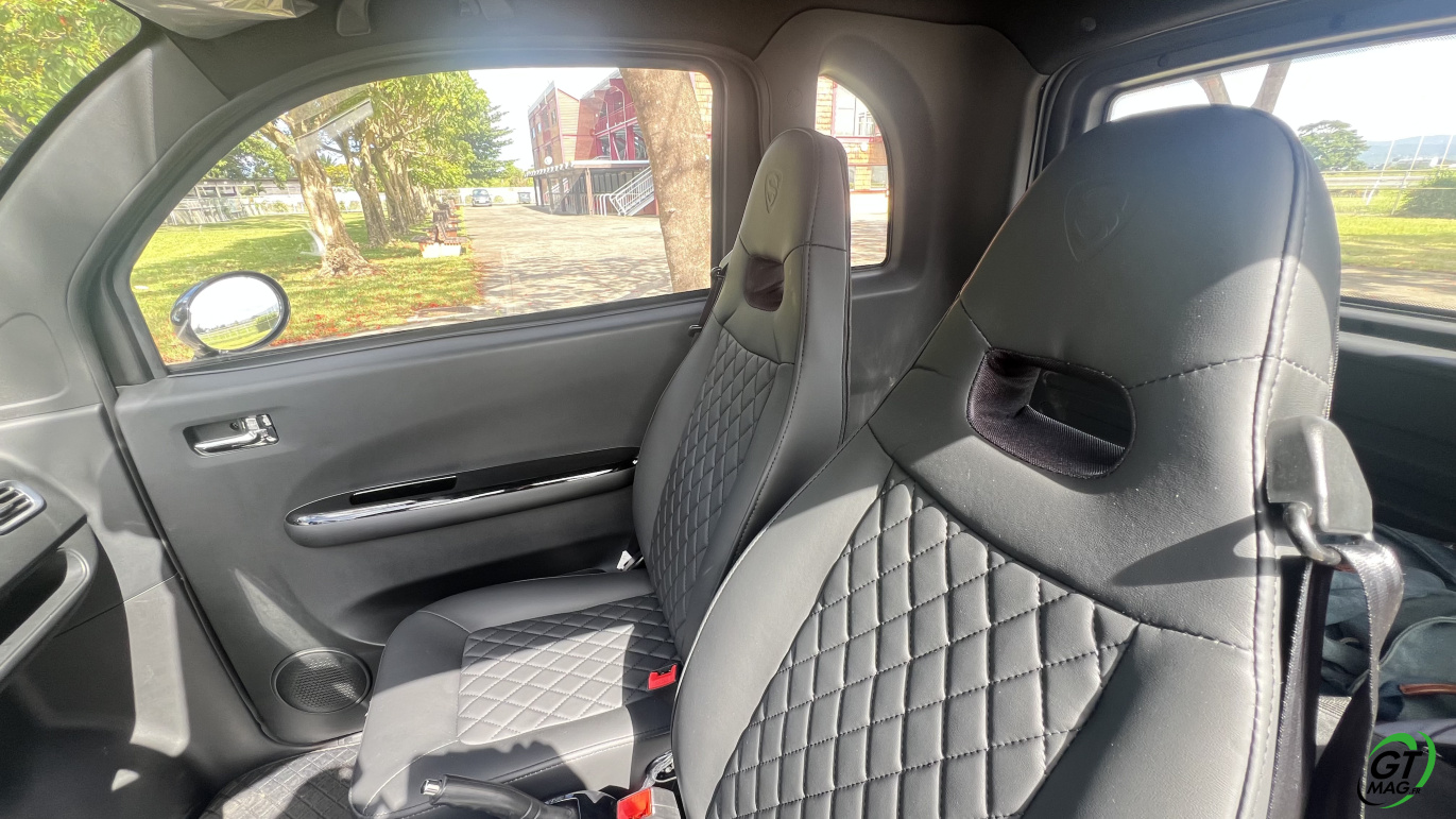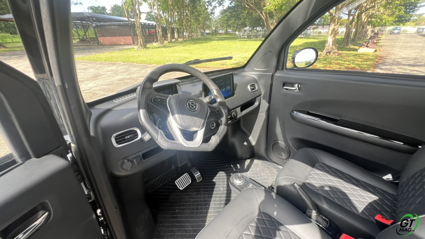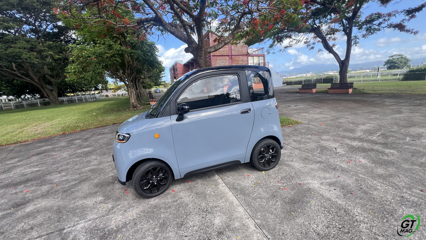 Pour info le conducteur doit être âgé de 14 ans minimum et être titulaire a minima du permis AM. Le permis B n’est pas nécessaire. Mais ceux qui sont nés après le 1er janvier 1988 doivent passer le permis AM (l’ancien BSR) et être détenteur de l'ASSR (1 ou 2) ou l'ASR, comme pour les deux-roues de 50 cm3 (scooters). Il s’obtient dans une auto-école. La formation pratique comprend cinq séquences dispensées sur un volume horaire total de huit heures, au minimum sur deux jours. Depuis le 1er mars 2024, les élèves en apprentissage anticipé de la conduite sont dispensés de la formation pratique… Enfin seules deux personnes peuvent monter à bord, soit un conducteur et un passager sachez qu’un enfant de moins 10 ans doit être installé sur un siège auto homologué. Comptez en Martinique un tarif de 12990 euros TTC…