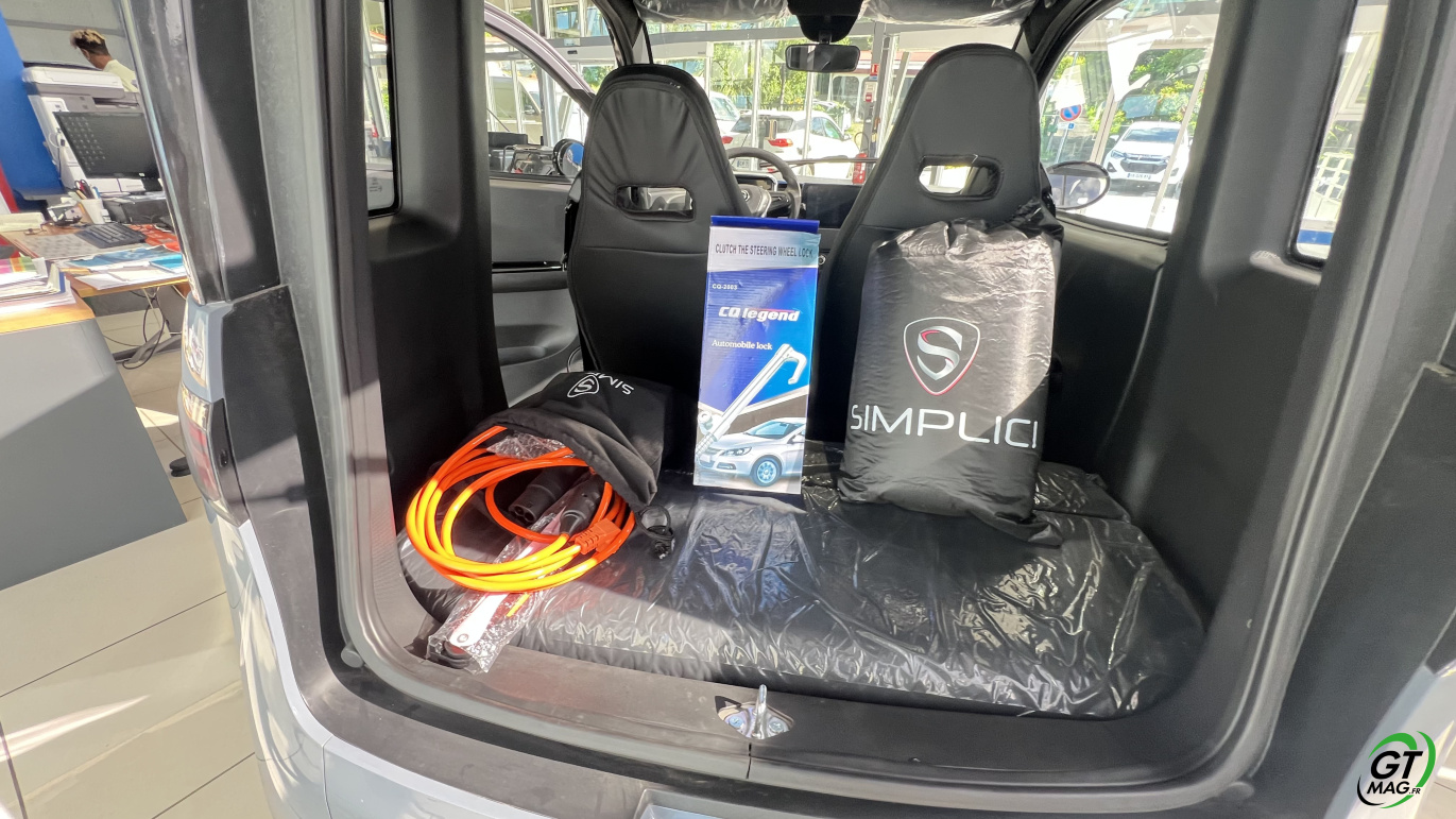 L’histoire de Simplici débute avec une idée simple mais puissante : rendre la mobilité accessible à tous, en éliminant les barrières imposées par le permis de conduire. La marque a été fondée par Mr Dayan et Mr Ammar dans le but de répondre aux besoins de mobilité de certaines catégories de la population, notamment les jeunes de 14 à 18 ans, qui peuvent conduire des véhicules légers sans permis, ainsi que les personnes âgées ou celles qui ont perdu leur permis de conduire pour des raisons diverses. Vous le verrez sur nos images un des gros avantages de la Simplici S1 c’est son volume de coffre plutôt spacieux avec 400 litres avec 105 cm de long, 45 cm de profondeur et 95 cm de hauteur.… De quoi transporter quelques valises de livres pour les élèves trop studieux ou tout simplement les courses faites pour toute la famille…