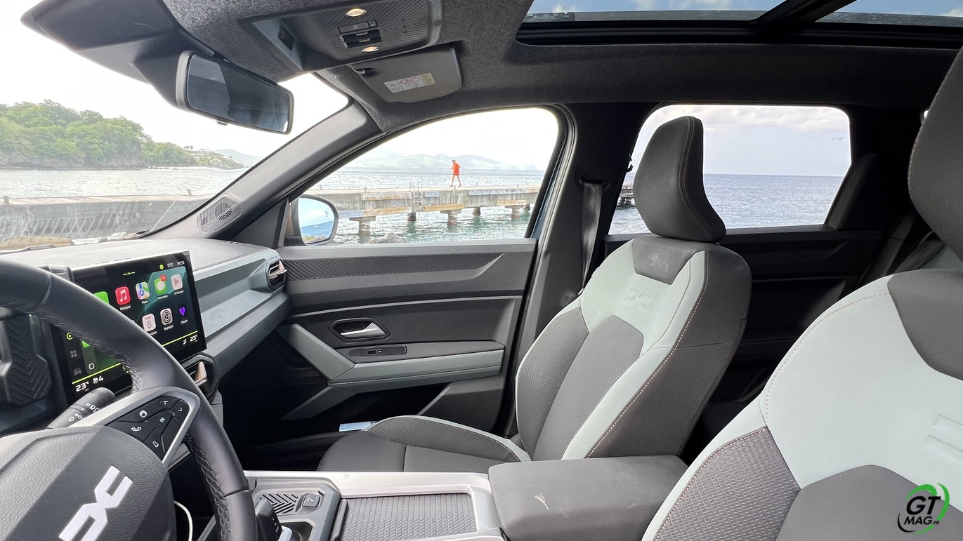 En termes de tenue de route, le DACIA Bigster est dans la bonne moyenne du segment C. Il se montre efficace ses 4 pattes sur notre autoroute et suffisamment maniable pour des sorties en ville. Sur nos routes sinueuses il est un peu plus à la peine compte-tenu de son gabarit, mais ses suspensions et son châssis équilibré offrent une conduite plutôt confortable. Mention très bien pour la direction assistée, plutôt bien calibrée pour un SUV de ce gabarit, ce qui permet de manier avec vraie aisance, même en milieu urbain. Le grand atout de ce véhicule c’est l’espace réservé aux passagers et à sa polyvalence… Côté volume le coffre est un vrai plus pour nos îles si vous êtes sportifs avec planche de surf ou cycliste ou tout simplement plagistes avec un belle et grande famille elle peut assurément vous séduire… A vous de voir et de l’essayer maintenant…