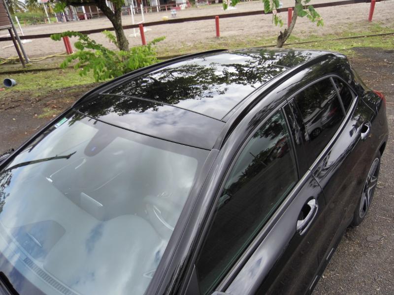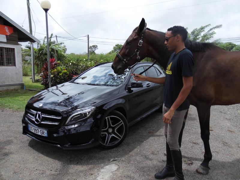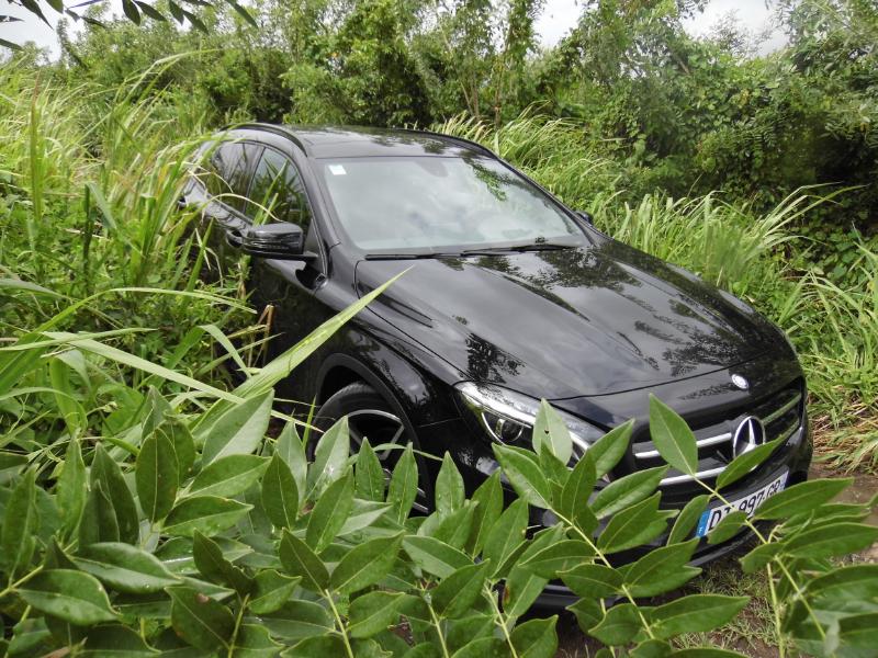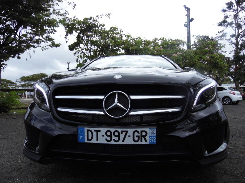 "Merci à l'hyppocampe bien connu des jeunes cavaliers" Disposant d’une gamme de SUV déjà tentaculaire, qui va du baroudeur rustique « G », en passant par le SUV grand luxe GL, le moyen M et le – déjà «compact» dans sa définition – GLK,Mercedes-Benz propose une nouvelle offre pour s’affirmer parmi les autres petits SUV prémiums. A l'extérieur Une chose est cependant certaine, leGLA n’est pas dénué de charme en le découvrant chez Mercedes Martinique. Des muscles saillants, des flancs sculptés, les hanches larges et une ceinture de caisse haute, notre petit crossover joue les divas athlétiques. L’air de famille avec la Classe A est évident. Toutefois, dans l’opération, leGLA a quelque peu augmenté son encombrement: 2 cm en largeur, 6 cm en hauteur et 12,5 cm, le tout sans varier d’empattement. Bien entendu, compte tenu de la vocation de notre engin, la garde au sol prend également l’ascenseur, culminant à 17,4 cm. De quoi hautement tracer sur nos basses routes un luxe de baroudeur discret mais pleines de belles intentions… Habillé d’une belle robe «Noire» métallisée, l’ensemble frise la perfection dans l’élégance, et dès la sortie de la concession Mercedes à Acajou, les regards des passants nous indiquent à quel point ce GLA est une réussite stylistique… Le diffuseur arrière ou les mini-jupes latérales finissent le travail de séduction, et histoire de contraster avec les bords des passages de roues en plastique noir,Mercedes a su égayer l’ensemble en lui donnant une allure en lien avec son badge. La face avant ne laisse aucun doute sur sa provenance. Le logo surdimensionné attire l’œil alors que la signature LED caractéristique de la marque finit de souligner un regard acéré. A l'intérieur L’habitacle est l’exacte reproduction de la berline Classe A. Moderne et agréable à l’œil, l’agencement et les matériaux choisis ne souffrent d’aucune critique. Les sièges sports intégraux habillés en similicuir et surpiqués de rouge invite à prendre place… Ajoutez de l’aluminium autour des aérateurs et le tout aura une touche très chic. Comme de bien entendu, les coloris, textures et matériaux peuvent être personnalisés selon ses goûts afin de se concocter un véritable cocon à son image. L’ensemble des commandes semblent disparaître dans un autre monde celui du confort efficient… En quelques minutes sur notre rocade la voiture semble à nous depuis des lustres… Non quand vous testez uneGLA dans sa finition nommée ‘Fascination’ et bien… Vous créez votre propre bulle ou la météo, les autres, la rocade, ses bouchons et les gens pressés n’ont plus vraiment d’incidences… Question habitabilité, les dimensions agrandies duGLA profitent surtout à l’arrière, où l’accès à la banquette est favorisé par une découpe de portière très large. Une fois assis, les passagers seront bien à leur aise, avec suffisamment d’espace aux genoux et de garde au toit. Le coffre, quant à lui, voit son volume augmenter de 80 litres à 421 litres. Banquette rabattue, Mercedes revendique un volume total de 1’235 litres. Sous le capot Le GLA bénéfice d’une riche palette de propulseurs. En essence, 4 niveaux de puissance: 122 CV (GLA 180), 156 CV (GLA 200), 210 CV (GLA 250) et 360 CV (GLA 45 AMG). En diesel, le choix se fera entre trois motorisations: GLA 180 CDI (109 CV), GLA 200 CDI (136 CV) et GLA 220 CDI (170 CV). A noter que tant chez les essences que les diesels, les deux moteurs les plus puissants sont accouplés exclusivement àune boîte de vitesses à double embrayage à 7 rapports (boîte manuelle 6 pour les autres) et peuvent eux-seuls recevoir la transmission intégrale 4Matic. Pour notre essai, nous avons hérité du GLA 220 CDI 4Matic, développant 170 CV à 4'000 t/min et 350 Nm de couple dès 1400 t/min, avec la boîte à double embrayage et le «4x4». Ce bloc fait merveille dans notre GLA. Ne manquant jamais de souffle, il emmène à bon rythme et sans effort notre crossover en direction des 3 Îlets. Côté consommation, et malgré un poids conséquent de 1'595 kg à vide à tirer, le résultat est plutôt bon: une moyenne à la pompe de 7,4 l./100 km sans chercher à rouler à l’économie. Une position d'ailleurs proposée dans le GLA, dite 'E', est une bonne façon d'aller dans nos bouchons en économisant un maximum de carburant... Au volant Une fois sur nos petites routes non loin de Carrère, leGLA fait preuve d’un comportement rigoureux et dynamique. Le roulis n’est que peu perceptible et la direction, très précise, pourrait cependant se montrer plus directe et communicative, plus en accord avec le côté ludique des réglages choisis pour le châssis.
