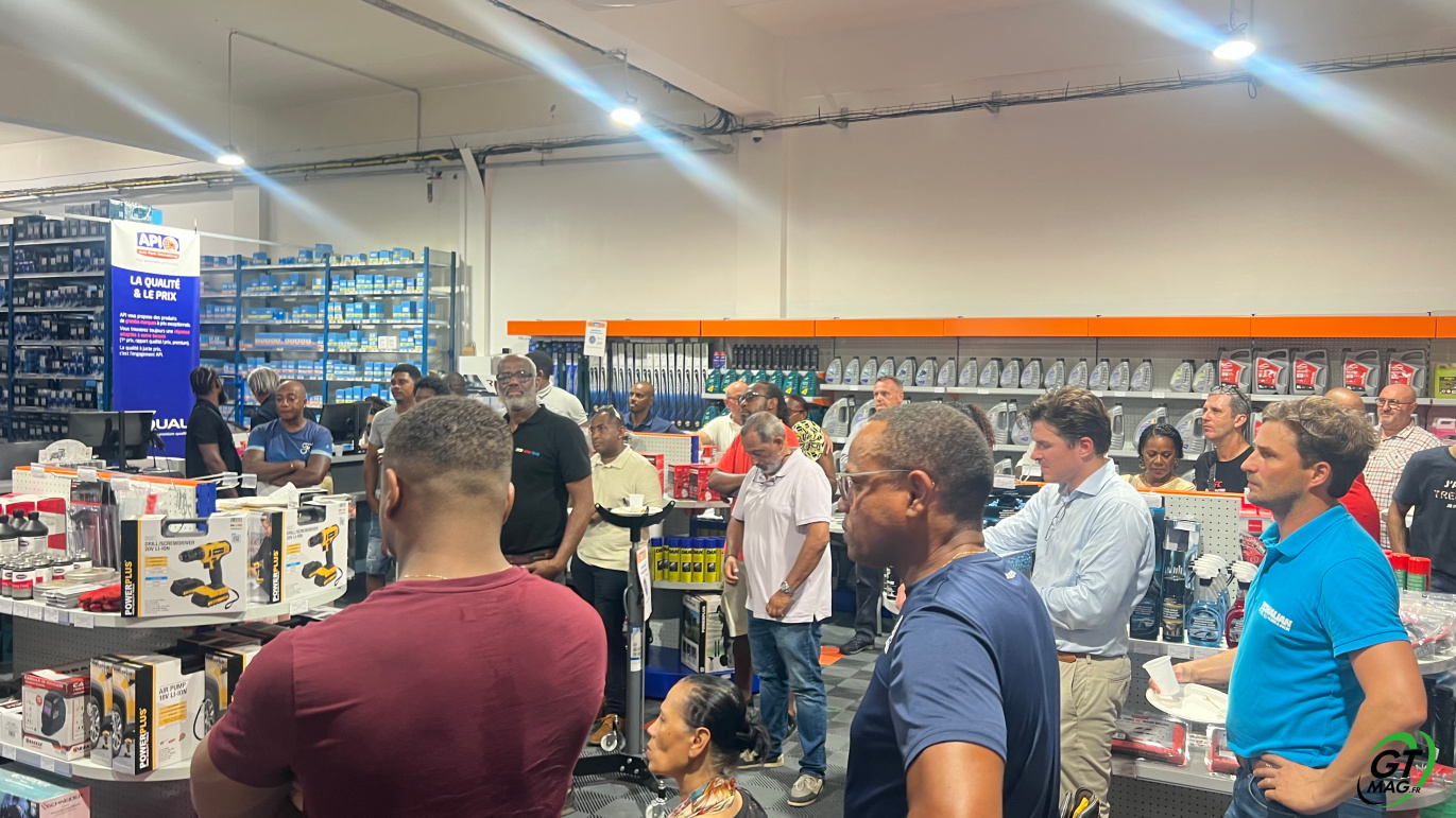 Présent avec toute son équipe, Hervé ROUAS Directeur API accompagné d’Eric PELISSIER Responsable National Business Développement chez DOYEN AUTO France affichait hier soir une sincère joie pour l’ouverture du second site API de pièces automobiles pour particuliers et professionnels… La performance est bien là avec deux centres ouverts en 3 mois… Après être revenu sur son parcours de cadre Hervé Rouas nous rappelait que le groupe Doyen et le Groupe DE REYNAL existait respectivement depuis 1922 et 1913… Pour ce qui est de DOYEN FRANCE Hervé ROUAS nous rappelait la logistique de l’équipementier imposante avec des commandes préparées à la voix par exemple ce suppose une logistique informatique de pointe, soulignant qu’en Belgique pour ne citer qu’elle, ‘DOYEN’ dispose de 65000 m2 de surface de stockage répartis sur 13 plateformes avec près de 110.000 références stockées… API Martinique à de fait accès de façon hebdomadaire à 200.000 références avec des apprivoisements en 24 heures et des livraisons en Martinique depuis le port du Havres chaque semaine… Les pièces proposées par API Martinique sont d’une grande fiabilité dites Premium à des coups plutôt intéressant pour le client final plutôt intéressants représentées par exemple par la marque de DOYEN France ; DOYEN Auto… Hervé à ensuite présenté son équipe qui se veut proche des clients et dans un esprit familial…