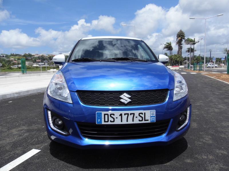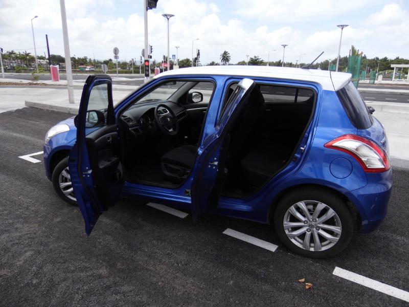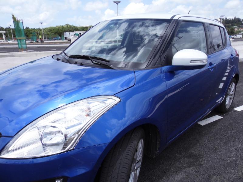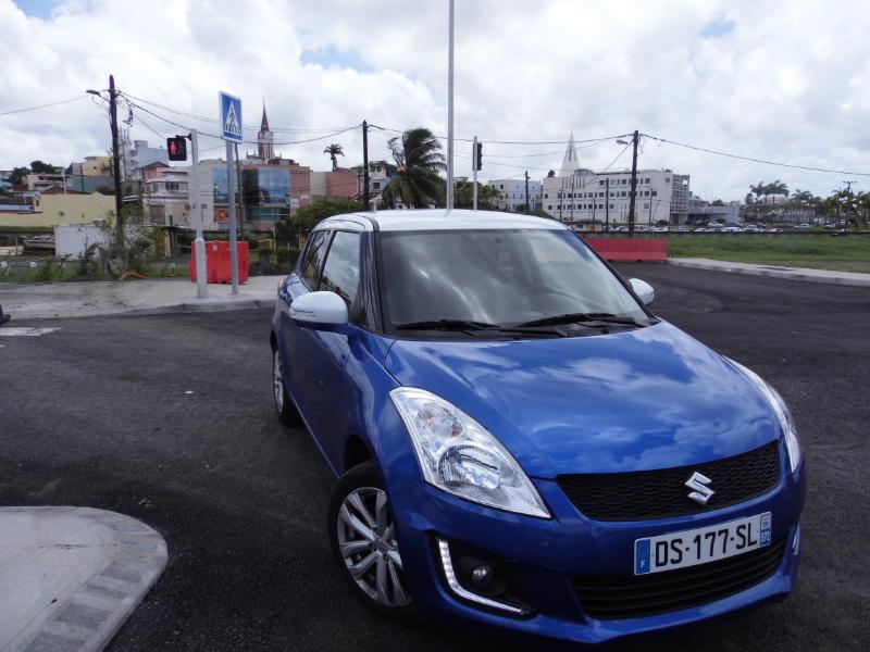 Quelques petits problèmes à résoudre concernant l'achat de votre véhicule… En bref et pour faire court… Il vous faut un véhicule pas trop long, histoire de vous garer rapidement ici où là… Vu que vous prenez chaque bouchon de la journée (Dur la vie d'hommes ou de femmes actives…), il vous faut du confort et de la praticité, normal… Mais tout comme moi, vous avez horreur de passer à la pompe tous les 2 jours… Évidement… Et comme vous avez horreur de ressembler à votre voisine, bah Nan!!! Là, hors de question de ne pas pouvoir personnaliser votre autocomme il vous convient !!! Nan! Nan! Nan! Alors pour vous changer la vie surement et avfant de faire une grosse bêtise pour 3-4ans, faite comme moi et Grantomobil.fr, allez essayer la nouvelle Suzuki SWIFT 1,2 WT… Pour nous c'est…. Fleur sur la ville!!! Dès la prise en main chez CCIE Martinique de la SWIFT, vous saute à 'l'envie' la touche"so color" : une option permettant de varier les couleurs du toit et des rétroviseurs. La combinaison bleue (la carrosserie) et blanche (le toit et les rétros), plutôt classe, c'est en tout cas très réussie! Une élégante citadine de 3,85 mètres de long comme une fleur sur la ville...Par rapport au modèle remplacé, la nouvelle Swift gagne 9 cm en longueur. Longue de 3,85 mètres donc, la nouvelle Swift fait 1,695 mètre de large et 1,51 mètre de haut. Ses occupants bénéficient d'un empattement de 2,43 mètres qui progresse de 5 cm. Extérieurement, les designers Suzuki ont très légèrement retravaillé le dynamisme et l'élégance de la citadine japonaise. Conçue pour une clientèle Européenne,la Suzuki Swift est une citadine séduisante et agréable à conduire en ville. Nous avons arpenté le Lamentin...