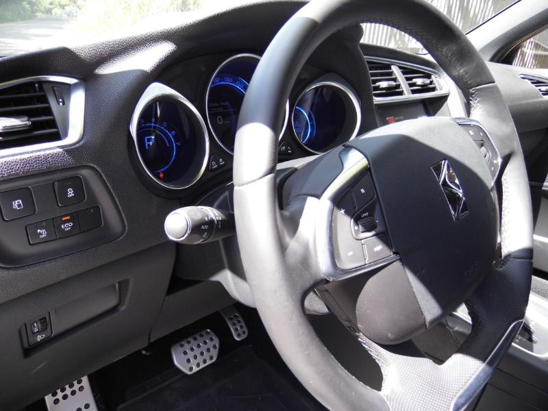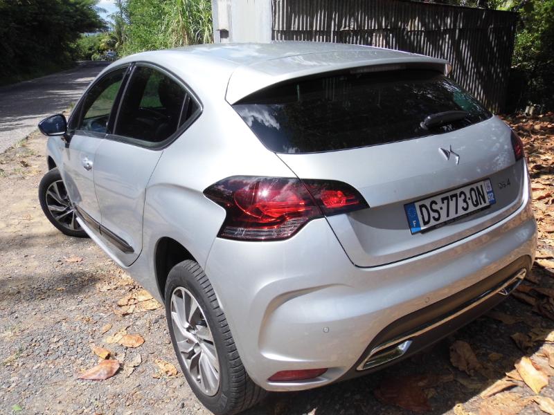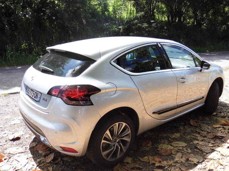 Elle sonne l'arrivée, après celle du 3 cylindres 1.2 PureTech 130 qui rafraîchissait le catalogue essence, celle des 1.6 BlueHDi 120 (Notre essai) et 2.0 BlueHDi 150 et 180 qui repeigne totalement le tableau du catalogue diesel. Comme sur de nombreux autres modèles de la gamme PSA, dontla Citroën C5, le bloc 2.0 BlueHDI 180 ch, qui fait de la DS 4 diesel la plus puissante jamais proposée, est associé à la nouvelle et vraie boîte automatique EAT6 à 6 rapports. Moi j'aime cette DS… Ses lignes pures plus agressives et donc plus sportives révèlent à quel point le constructeur français mise surla gamme DS pour démontrer ses capacités technologiques… C'est la sortie de la concession et très vite des envies de trajets mixtes nous gagnent… L'envie de piloter sur les petites routes sinueuses de Ducos, oui… Connaître le comportement dela DS4 en ville sûrement… Oui la DS4 donne envie de rouler… Le coupé Citroën arbore le logoDS chromé sur le capot, sur le hayon et sur le pied milieu de la voiture. L'utilisation de chromes sur l'entourage des vitres latérales et sur le bouclier avant ainsi que les jantes alliage de 16 pouces accentuent le positionnement distinctif de la DS, qui affiche par ailleurs une signature lumineuse, de jour comme de nuit, à l'avant comme à l'arrière.