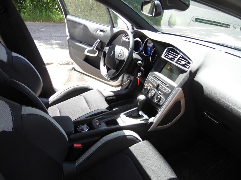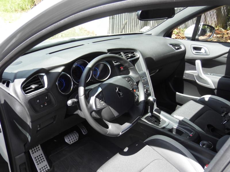 A l'intérieur, l'habitacle profite de série d'un volant en cuir et d'un pare-brise grand angle qui offre une vision vers le haut de 45° et se prolonge par un pavillon sombre. La dotation sécurité de la DS4 « Chic » comprend l'ESP, l'ABS avec répartiteur électronique de freinage REF et assistance au freinage d'urgence AFU, et six airbags frontaux, latéraux avant et rideaux.