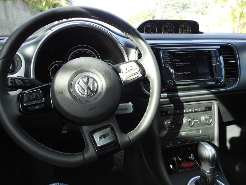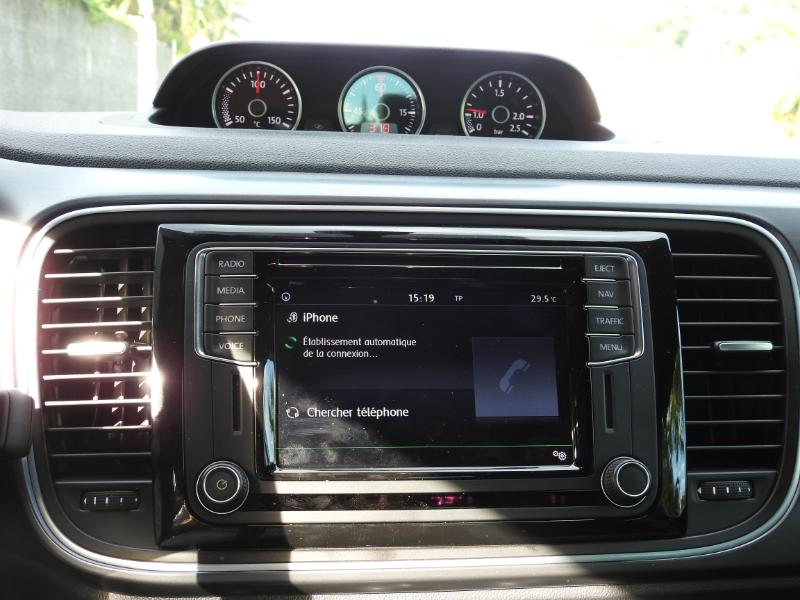A bord, moins d’extravagance. Vous retrouverez une console centrale très typée Volkswagen: très sérieuse, avec des aérateurs un peu tristes, mais aussi très ergonomique. Pour sa Coccinelle, Volkswagen a tout de même fait l’effort d’apporter de la joie de vivre!