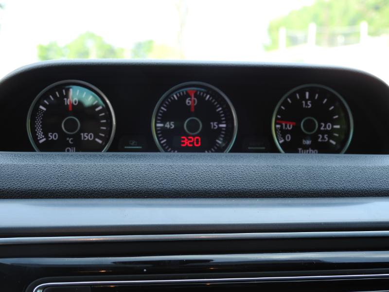 Pour l’ambiance sport-rétro, la GT COX reprend les trois compteurs additionnels de la motorisation 2.0 TSI 210: température d’huile moteur, pression du turbo, et même un chronomètre, un délire du marketing! Sens du détail, le pédalier est en aluminium, bon point!