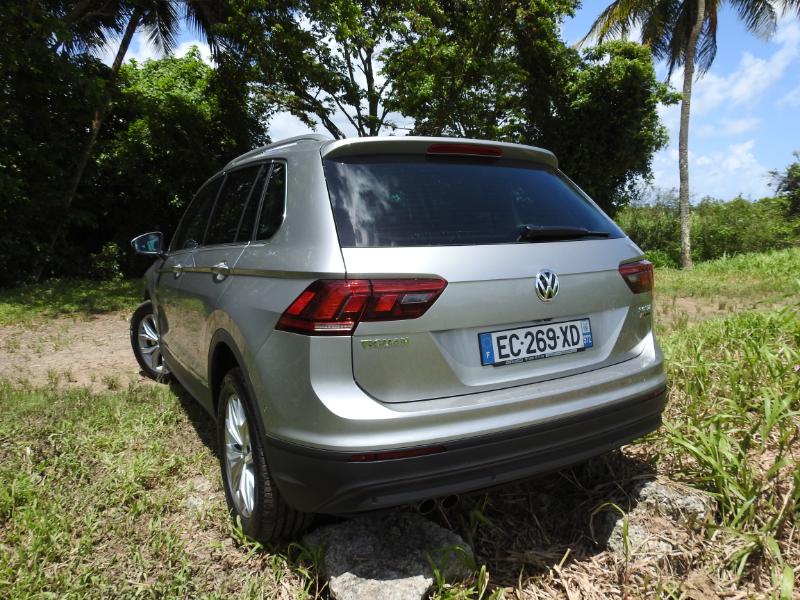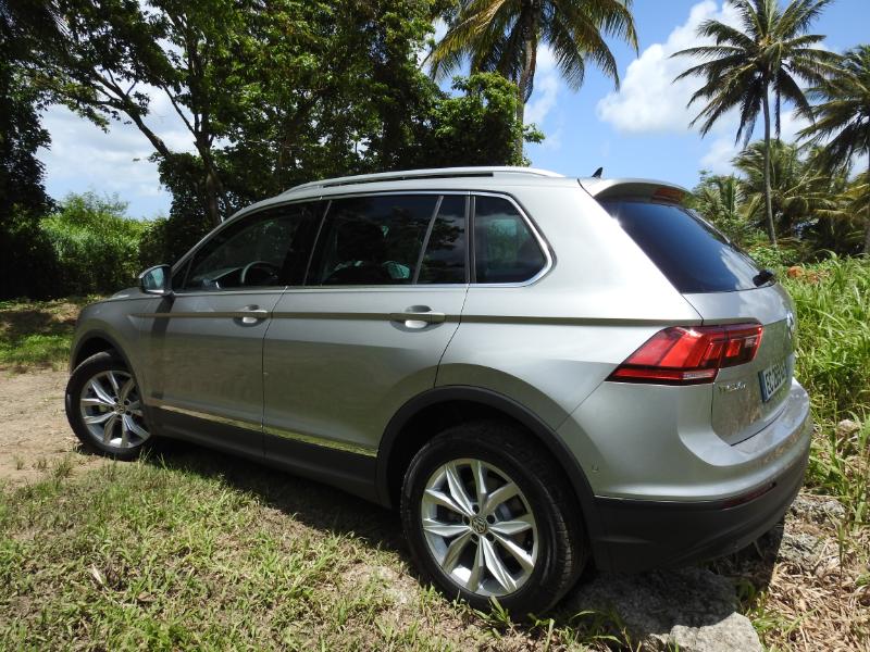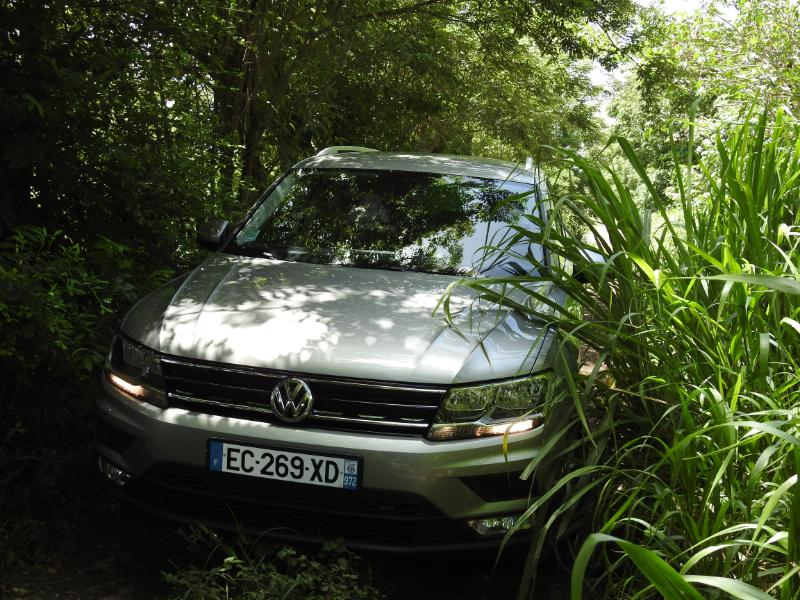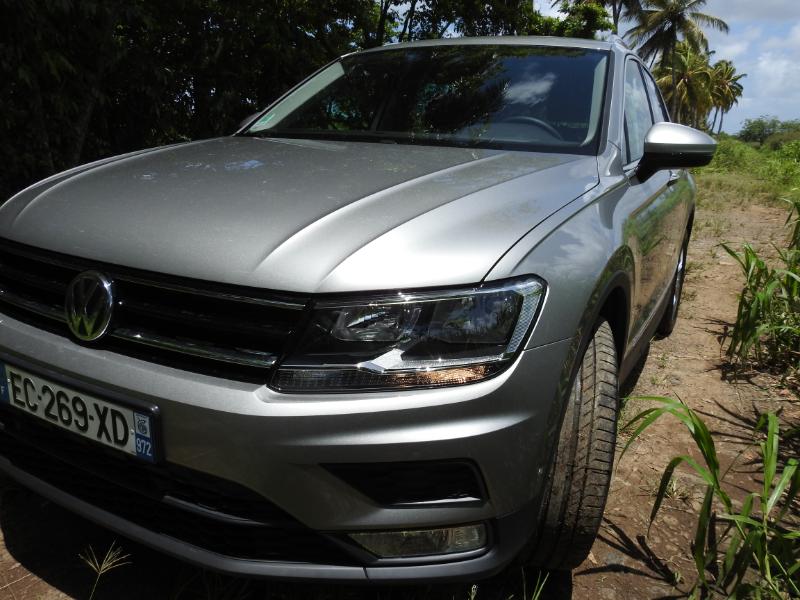 Prise en main du très attendunouveau Tiguan chez Volkswagen Martinique... Nos premières impressions concernent bien-sur les lignes et il faut s'y arrêté un instant... Exit les rondeurs, ce sont les ligne ciselés et les arrêtes saillantes qui sont à l’honneur. Et de visu, ça le fait! Les dimensions évoluent également, ce qui fait son petit effet: il gagne 6 cm en longueur, 3 en largeur et en perd 3 en hauteur. Il paraît du coup plus expressif et agressif, surtout équipé de jantes de 18 pouces et plus. Sur les finitions hautes Carat et Carat Edition, sachez qu’un pack extérieur R-Line est également disponible en option, composé de boucliers et de passages de roues bien plus marqués.Sans aller jusqu’à proposer autant d’aides à la conduite qu'un tout terrain,Volkswagen a tout de même implémenté quelques fonctions utiles sur le Tiguan 4X2 ou 4Motion. Déjà, la transmission intégrale dispose de quatre modes: Automatique, adapté à la plupart des utilisation, Neige (Boue chez nous...), Off-Road et Off-Road Individual paramétrable. La position Off-Road offre un assistant de freinage en descente, un ABS et un contrôle de stabilité adaptés à la surface sur laquelle vous évoluez, une régulation du régime moteur et une gestion spécifique de la boîte DSG. Le Off-Road Individual y ajoute en plus la possibilité de configurer les systèmes susmentionnés et de désactiver les différents avertissements sonores et autres voyants qui illuminent le tableau de bord dès que vous perdez en motricité.