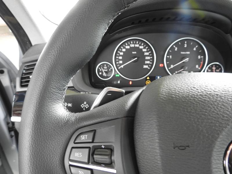 Sur la route, le X4 se montre particulièrement agile et dynamique malgré son poids élevé. Les ingénieurs de chez BMW ont réussi à offrir au petit SAC un comportement sportif dont la direction très précise est l’une des pièces maîtresses. Une fois les mains sur le volant et les palettes, on en oublie que l’on est au volant d’un 4×4 de 1 820 kg, un mastodonte ! Des entrées en courbes un peu trop rapides nous le rappellent à travers un sous-virage qui n’a rien de surprenant. L’ESP faisant correctement son travail, aucun risque à s’amuser au volant du sportif SUV coupé. A noter que notre X4 d’essai est équipé de l’option Suspension SelectDrive permettant de jouer sur la fermeté de l’amortissement. Les modes disponibles sont : Confort (standard pour un confort optimal), Sport et Sport+. On regrettera que ce dispositif sportif ne soit pas de série car la boîte de vitesses automatique à 8 rapports Sport équipe d’office le X4 xDrive30d.