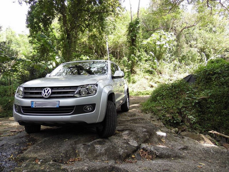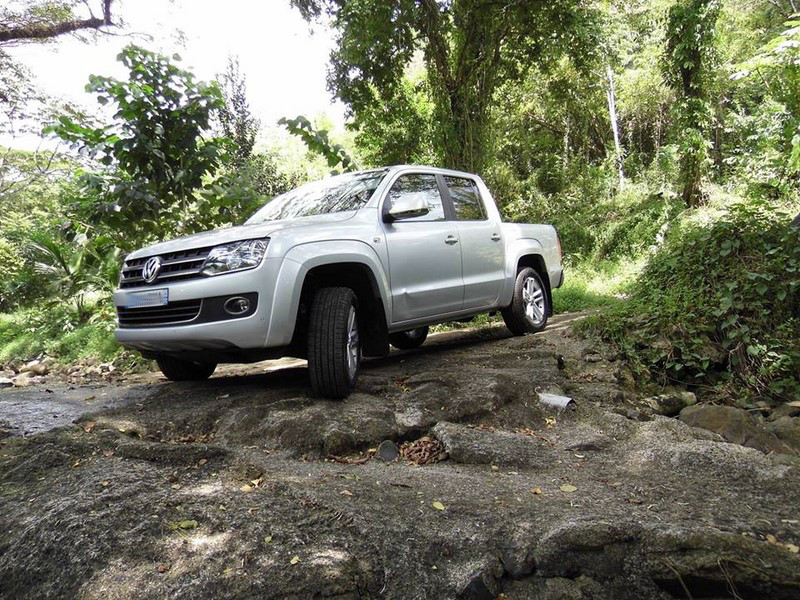 A travers les chemins sinueux et arides des Mornes, l’AMAROK s’en sort plutôt très bien et encaisse les dévers et autres obstacles que nous lui soumettons avec autorité et expérience technologique… Dans les champs meubles près des cannes là aussi on prend un vrai plaisir sans se faire peur et nous tentons même le gravissement d’un petit massif rocailleux sans un seul 'OUPS' !!! Gravir les chemins pentus, passer les gais, la aussi l’AMAROK s’en dégage facilement sans même l’aide d’une électronique adaptée… La boîte de vitesse 8 rapports joue son rôle et synchronise vos pensées actives de l’instant au bon angle d’attaque des pièges de la nature… Pas une seule goutte de frayeur ou de sueur pour avaler avec notre engin les dangers d’un chantier en cours par exemple…