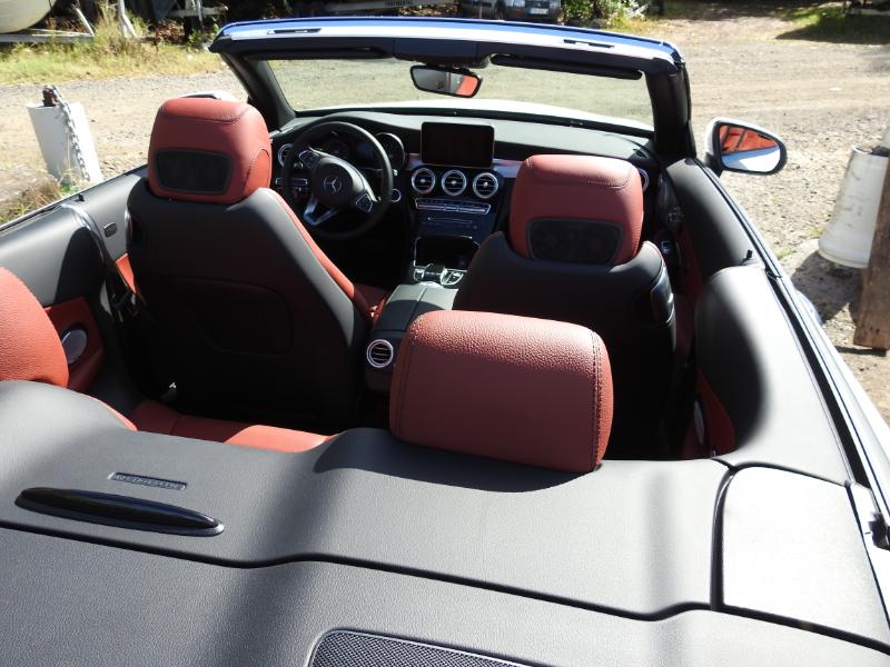 Et franchement le style final capoté ou non, couplé à la boîte de vitesse 9 rapports (9G-TRONIC) qui elle-même entraîne sous le capot un vrai 211 ch ça décoiffe sur la rocade... En fait non cela déménage car remarquablement silencieuse capote fermée, la C Cabriolet isole aussi très efficacement ses occupants des courants d'air en configuration ouverte et ce jusqu'à environ 110 km/h avec l'astucieux système Aircap de cette C Cabrio. Au classique filet anti-remous motorisé se dressant derrière les appui-têtes des passagers arrière, ce dispositif en ajoute un autre surmonté d'un petit spoiler au sommet du pare-brise. Pas très gracieux, mais plutôt efficace. Pour décapoter même à 23°, la C Cabriolet peut aussi disposer du fameux Airscarf (littéralement écharpe d'air, soufflant de l'air chaud sur la nuque des occupants avant. Un vrai plus pour les frileuses du soir ! ...