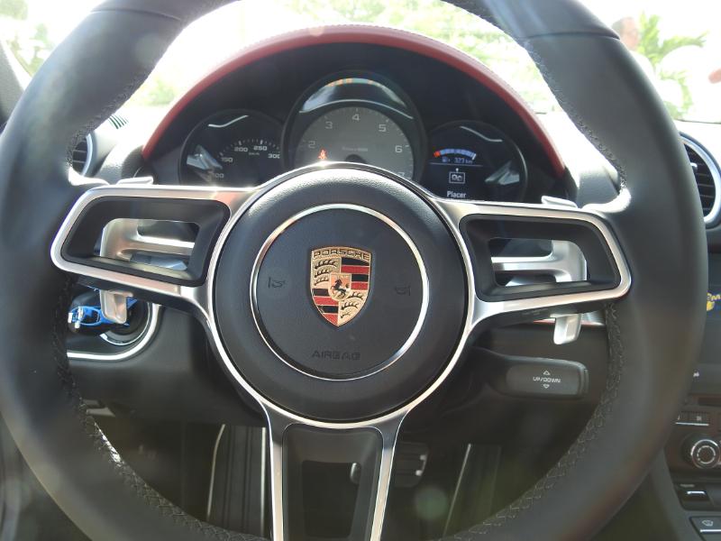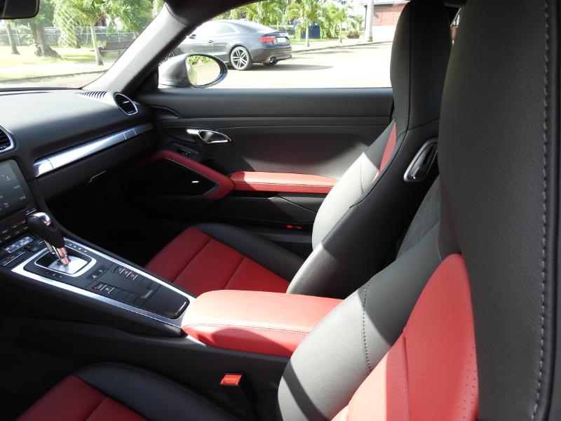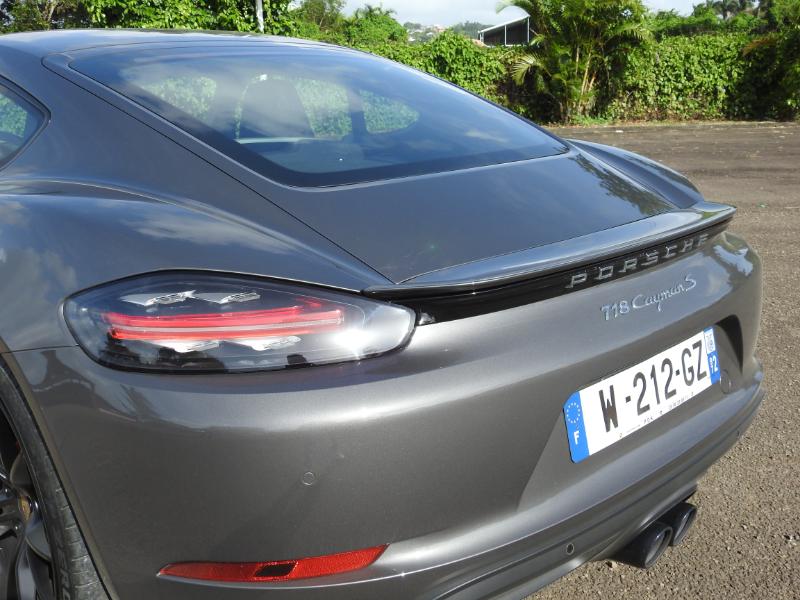 Si la technique subit une révolution, le design demeure fidèle. On lui donne une collection d’améliorations lui permettant de s’affirmer. Le bouclier s’assagit. Il propose des traits rectilignes, plus sévères, qui l’alignent sur l’évolution de la 911. À la silhouette, on maintient l’essentiel. La version de base vient avec des roues de 18 pouces « gratuites », 19 pouces pour la S notre essai en Martinique. Sept autres designs seront livrables avec des roues de 18 à 20 pouces. L’arrière s’exprime. Les lentilles claires adoptent un coffret noir qui intègre des bandes lumineuses et quatre petites languettes aux DEL. Pour rehausser le tout, une applique va de part et d’autre des feux arrière avec l’inscription PORSCHE. La version de « base » propose un pot d’échappement au centre, alors que la S en obtient deux. D’ailleurs, il s’agit de l’unique véritable distinction entre les deux modèles.