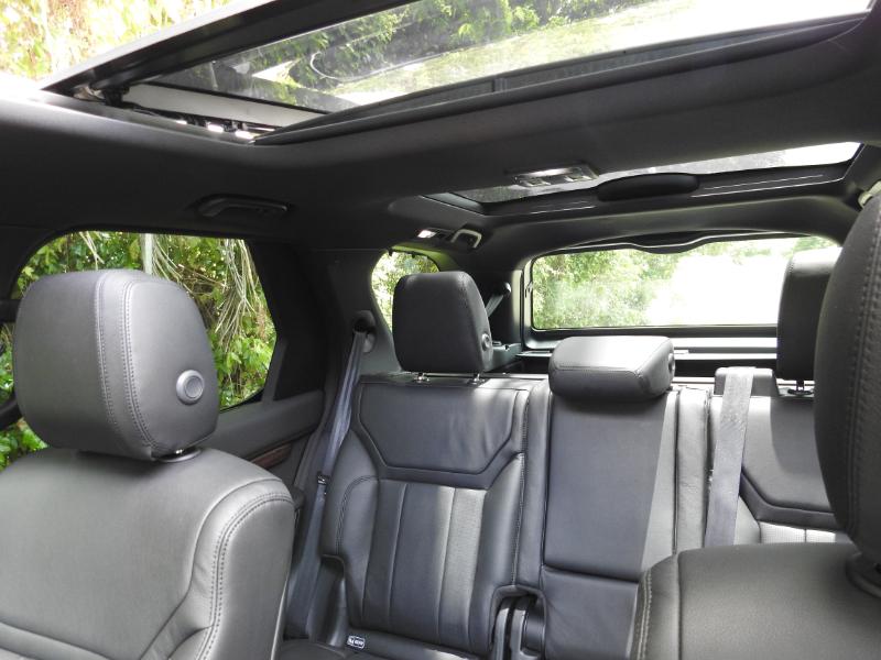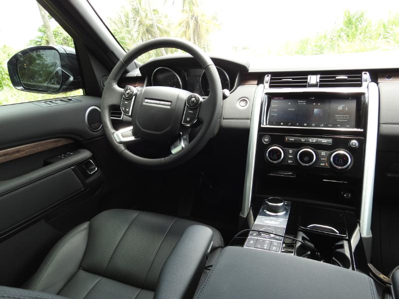 Avec sa longueur augmentée de 14 cm à 4,97 m, des 2 mètres de largeur, sa hauteur abaissée de 6,6 cm à 1,85 m, le nouveau Discovery en impose. Il se place en concurrence directe avec le Volvo XC90 (4,95 m, 2 m et 1,78 m) et l’Audi Q7 (5,05 m, 1,97 m et 1,74 m). Cet allongement permet au SUV d’offrir une habitabilité record. Le constructeur promet « 7 vraies places » pouvant accueillir 7 adultes, même sur long trajet. Les sièges s’escamotent et s’extraient électriquement du plancher. La manœuvre s’opère depuis le coffre, l’écran tactile de 10 pouces sur la console centrale ou encore depuis un smartphone. Des boutons plus conventionnels sont aussi à disposition.