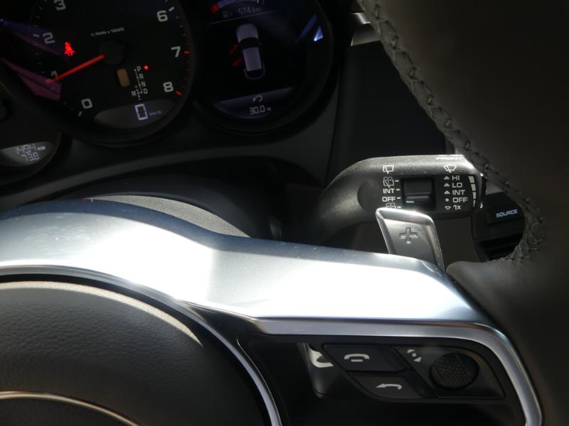 Bouclier et aérateurs ont été légèrement redessinés pour renforcer l’impression de largeur et de sportivité mais aussi s’adapter à la nouvelle identité lumineuse de la marque avec ses phares à LED répartis entre quatre points lumineux disposés en carré. La modification la plus marquée est la disparition des feux antibrouillard, fonction désormais assurée par les LED des phares de route. Côté flancs, Porsche propose de nouvelles jantes en alliage léger en option jusqu’à 21 pouces et des lames latérales argentées ou en noir brillant. Mais c’est à l’arrière que le changement est le plus notable, avec la nouvelle bande lumineuse à LED sur fond noir qui relie les deux phares arrière entre eux et porte le sigle « Porsche » en trois dimensions.