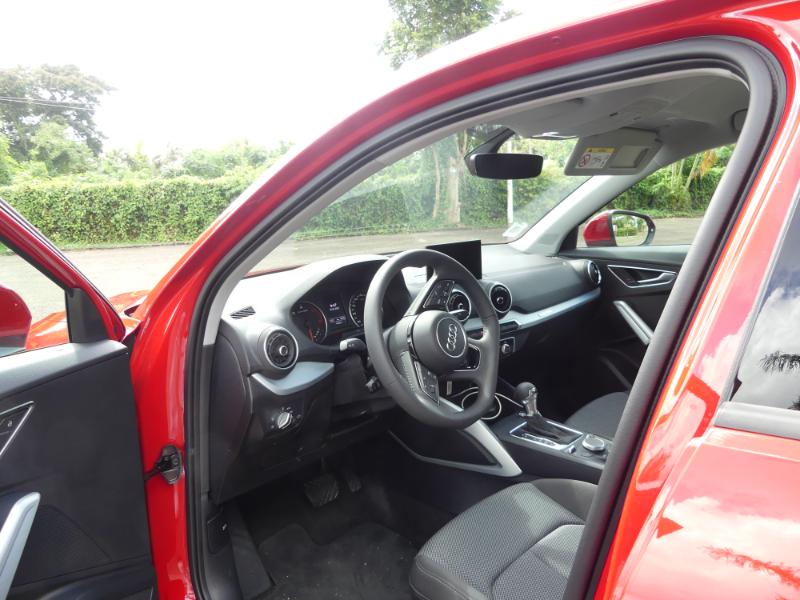 Le moins que l’on puisse dire c’est que Audi Martinique s’est lâché sur la configuration de ce Q2, notamment pour la couleur. Alors qu’habituellement la marque nous gratifie souvent de bleu pour les voitures de presse, là notre petit crossover arbore une sublime teinte « Rouge ». En combinaison avec la ligne Sport et les jantes 17 pouces il en jette ce Q2 ! Bien évidemment sa palette sait se montrer beaucoup plus classique, il ne faudrait pas trop choquer. Reste que le choix est plutôt contenu pour une Audi et le catalogue du modèle met en avant les couleurs flashy. Voilà un bon exemple des ambitions du Q2 pour charmer sa nouvelle catégorie de clients.